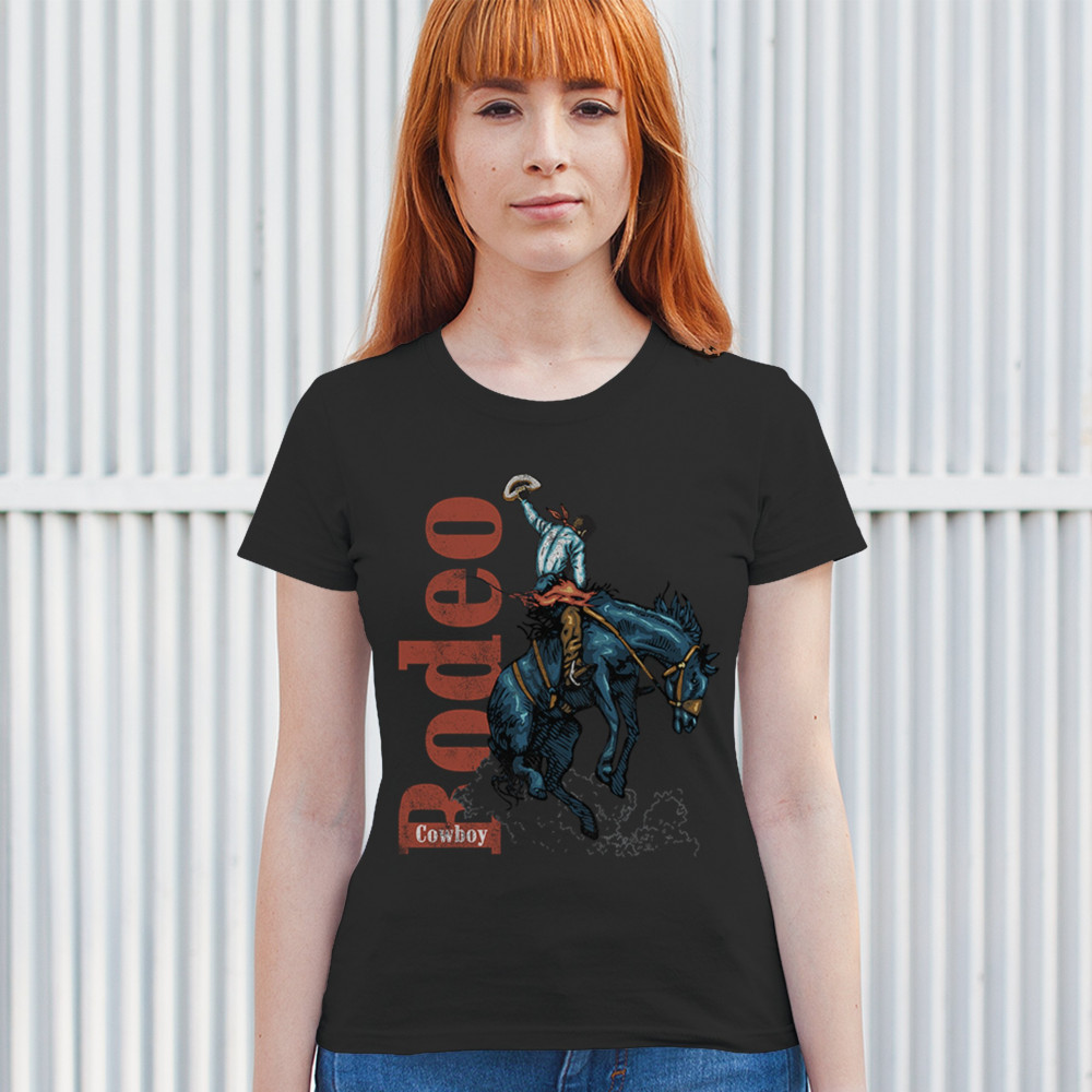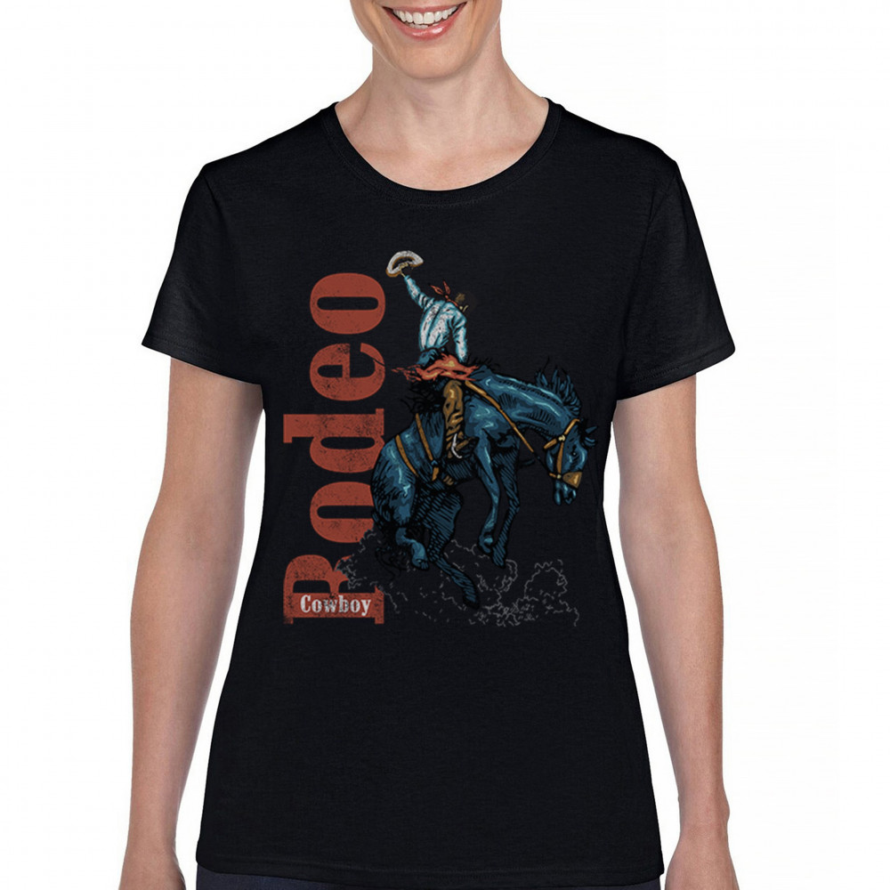 COWBOY RODEO t-shirt vintage horse rider american women's tee black