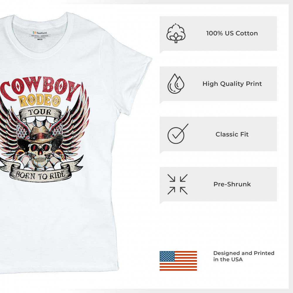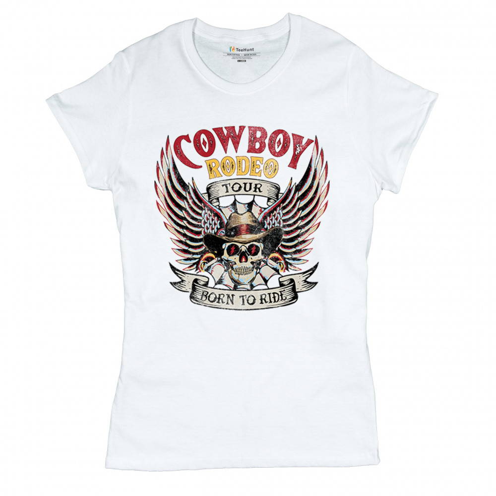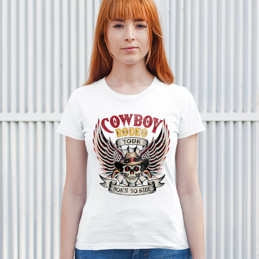 Cowboy Rodeo Tour “Born to Ride†design with skull, wings, and western grit. Built for riders, rebels, and rodeo fans who live wild.