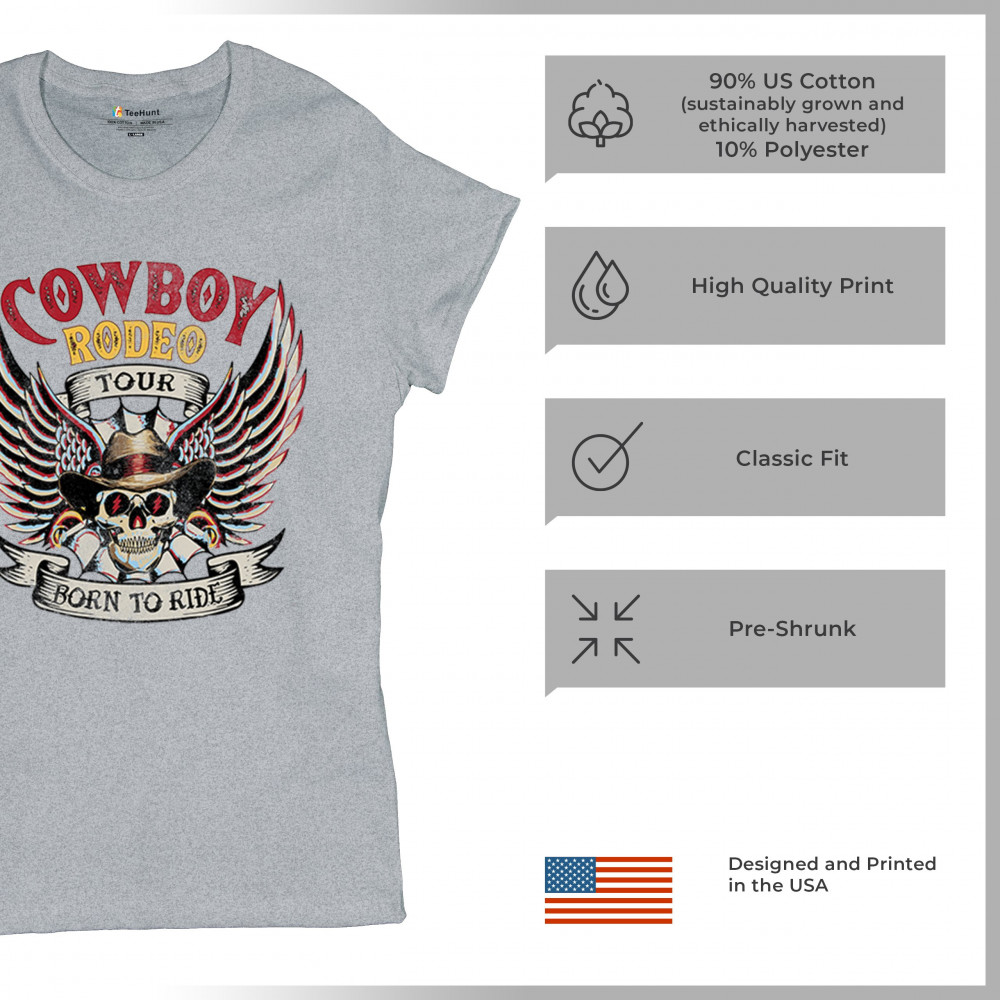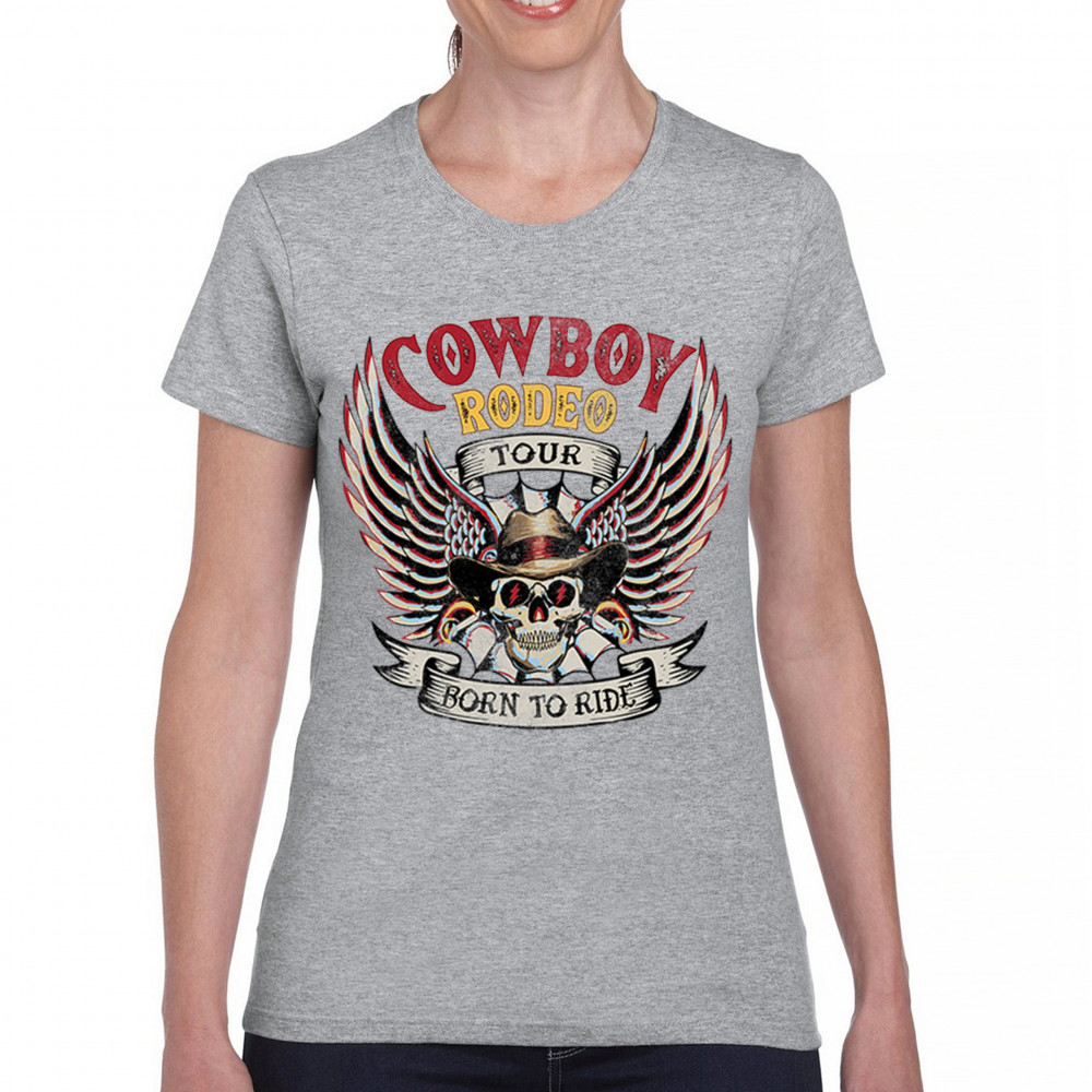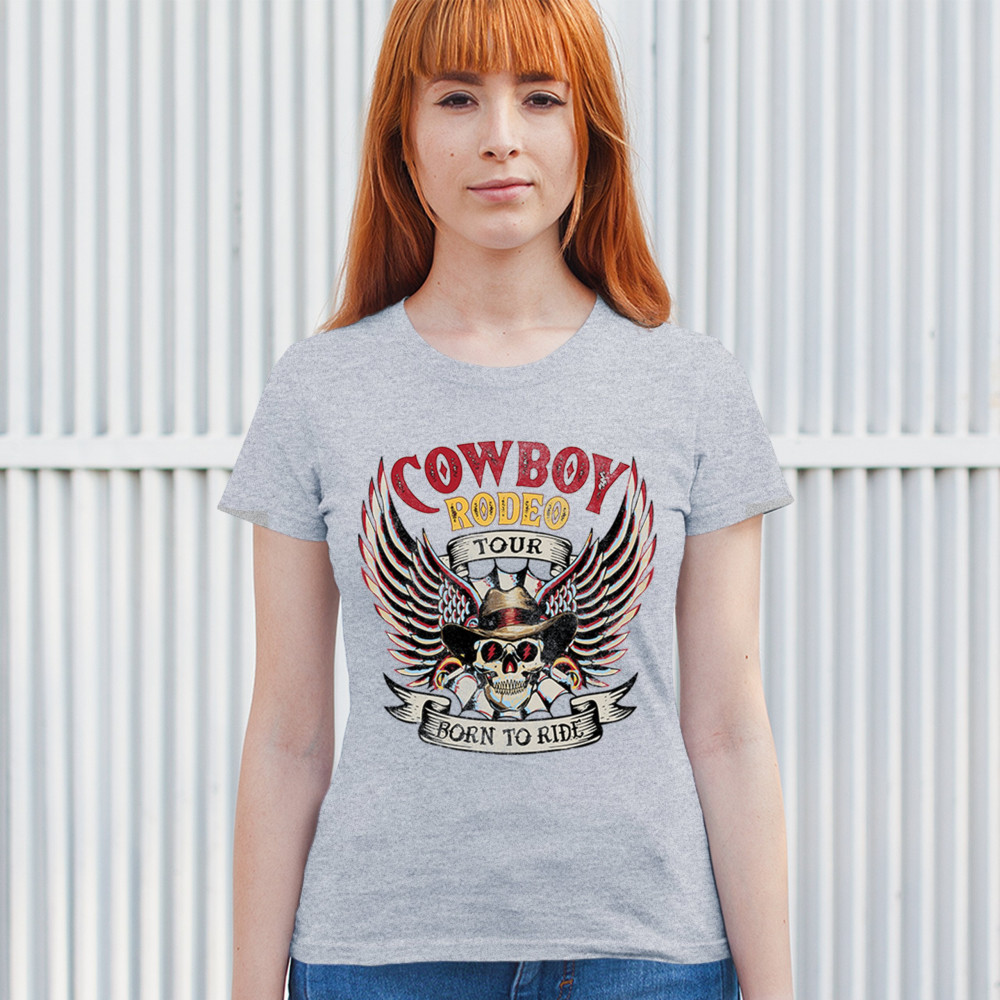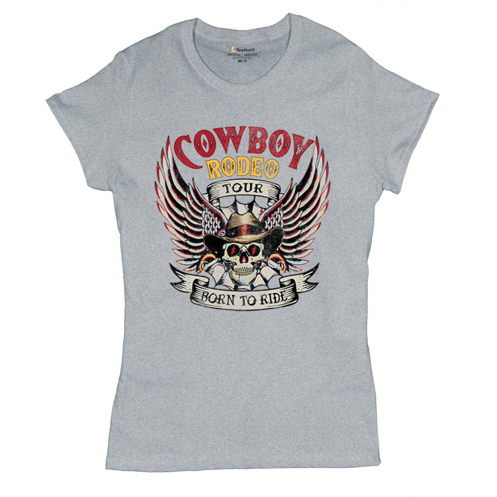 Cowboy Rodeo Tour “Born to Ride†design with skull, wings, and western grit. Built for riders, rebels, and rodeo fans who live wild.