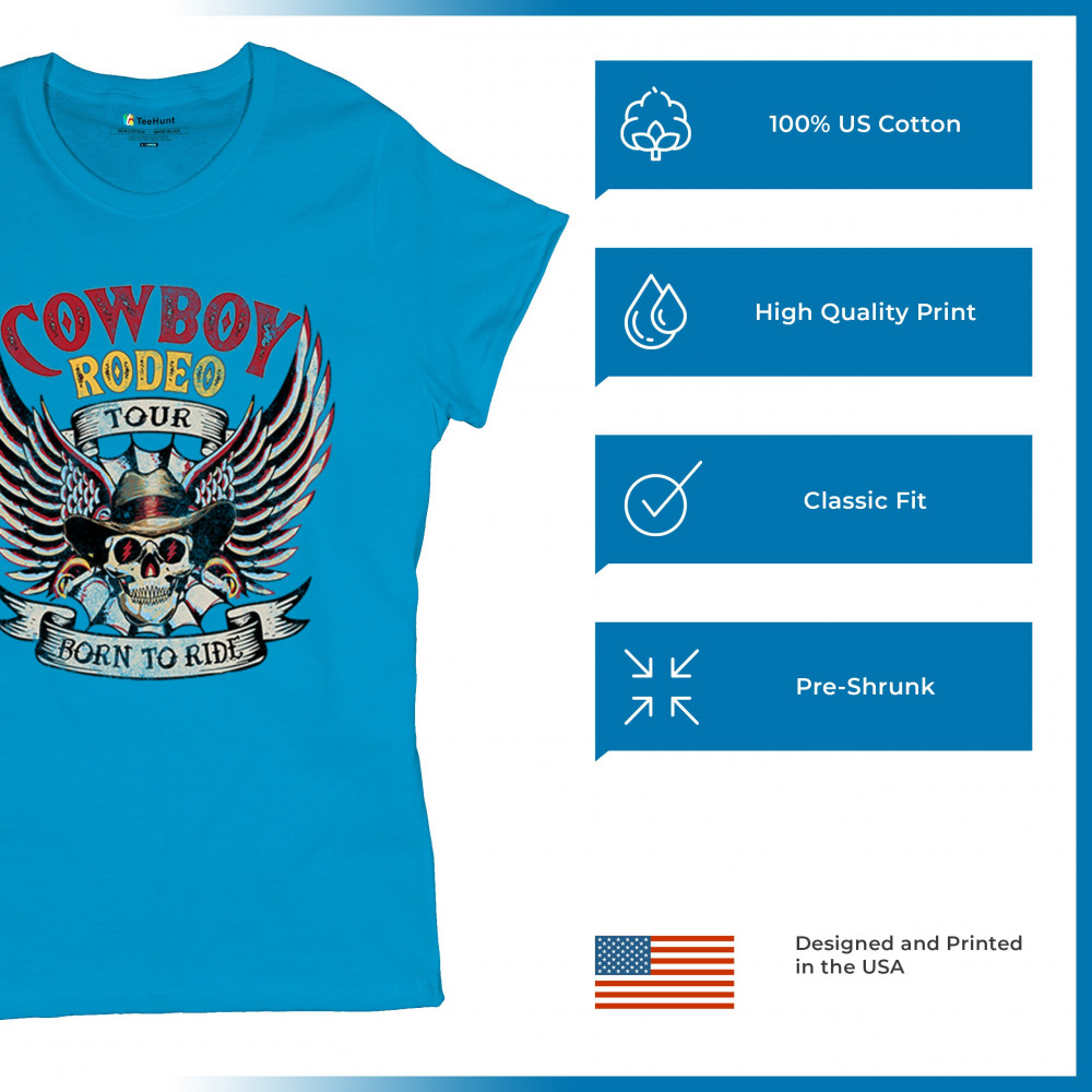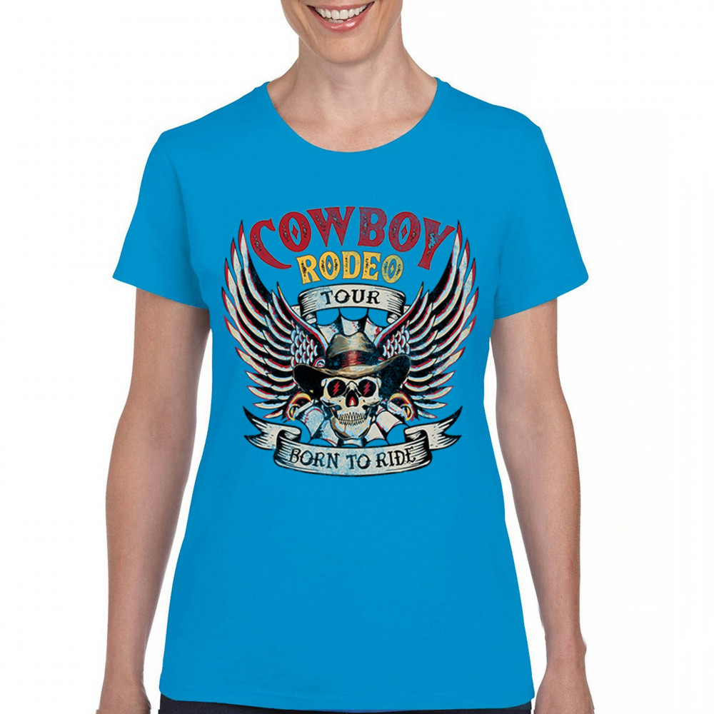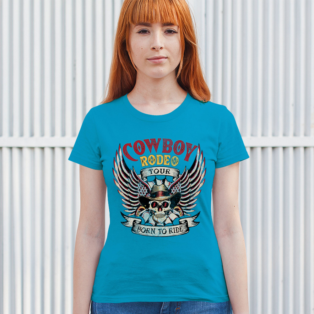 Cowboy Rodeo Tour “Born to Ride†design with skull, wings, and western grit. Built for riders, rebels, and rodeo fans who live wild.