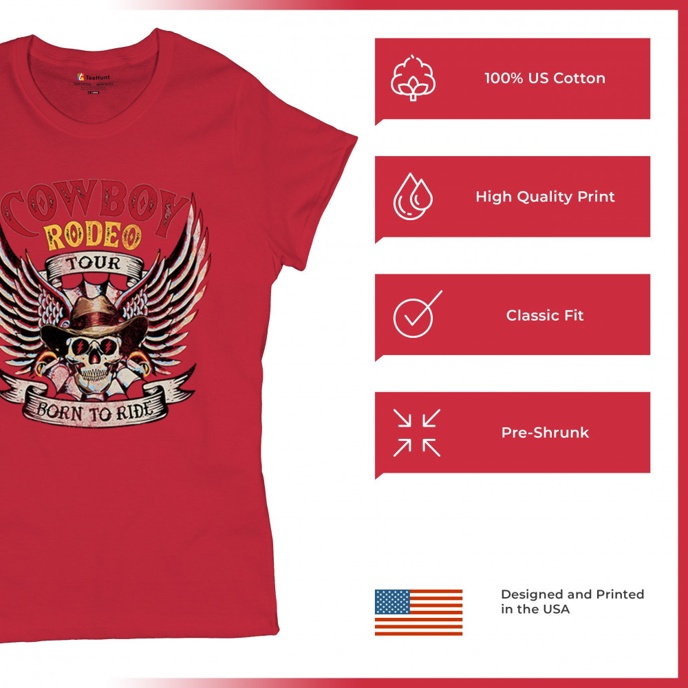 Cowboy Rodeo Tour “Born to Ride†design with skull, wings, and western grit. Built for riders, rebels, and rodeo fans who live wild.