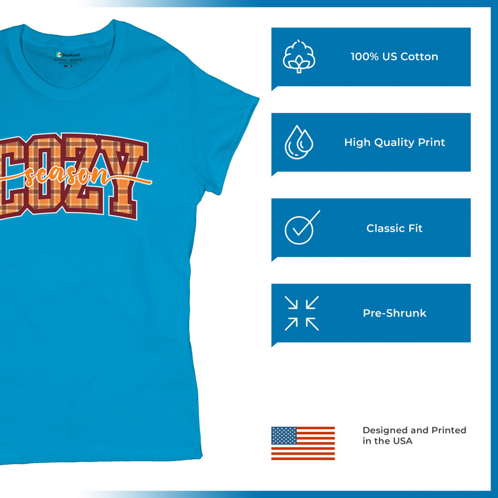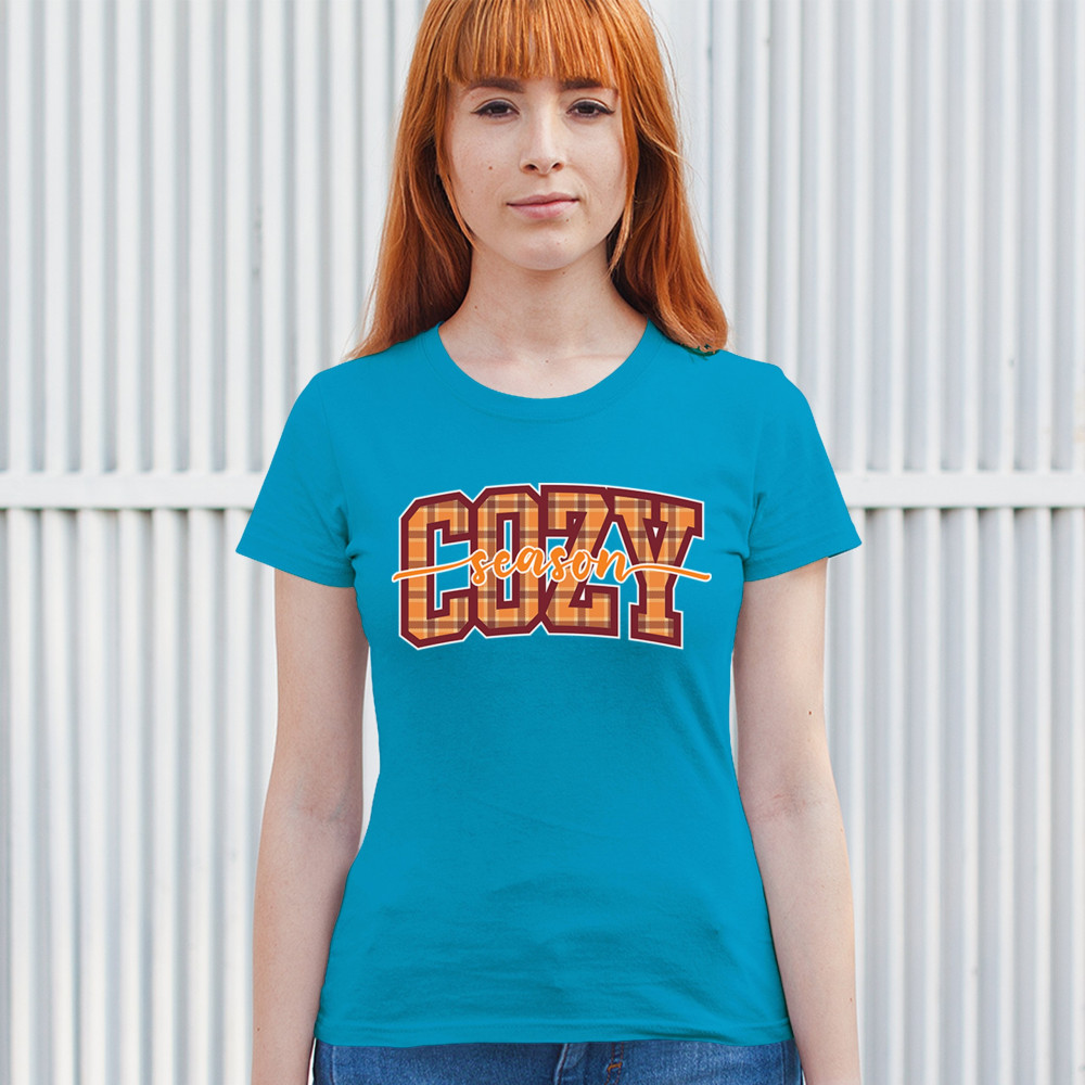 The "Cozy Season" plaid design is the perfect way to celebrate your love for all things autumn. With warm hues and a charming script, this print embodies the comfort and relaxation of the season. Whether you're spending chilly days at home or embracing the outdoor fall beauty, this design fits effortlessly into your wardrobe. It's an ideal gift for friends and family who appreciate the simple joys of autumn, including warm drinks, cozy sweaters, and the crispness of fall air.