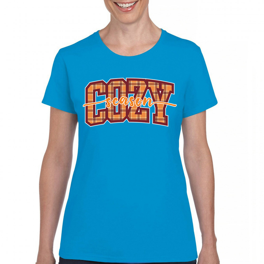 Celebrate fall with this "Cozy Season" plaid design. Perfect for autumn lovers who cherish cozy days, warm drinks, and the beauty of the season.