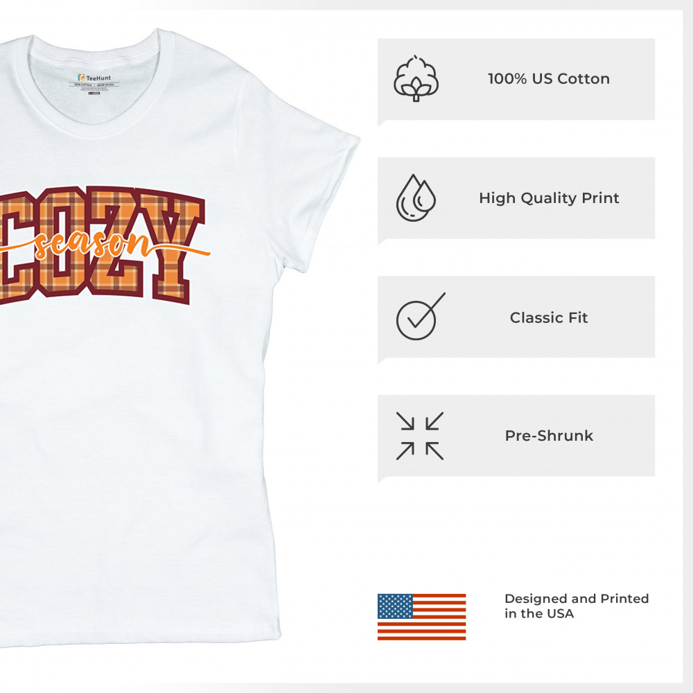 Celebrate fall with this "Cozy Season" plaid design. Perfect for autumn lovers who cherish cozy days, warm drinks, and the beauty of the season.