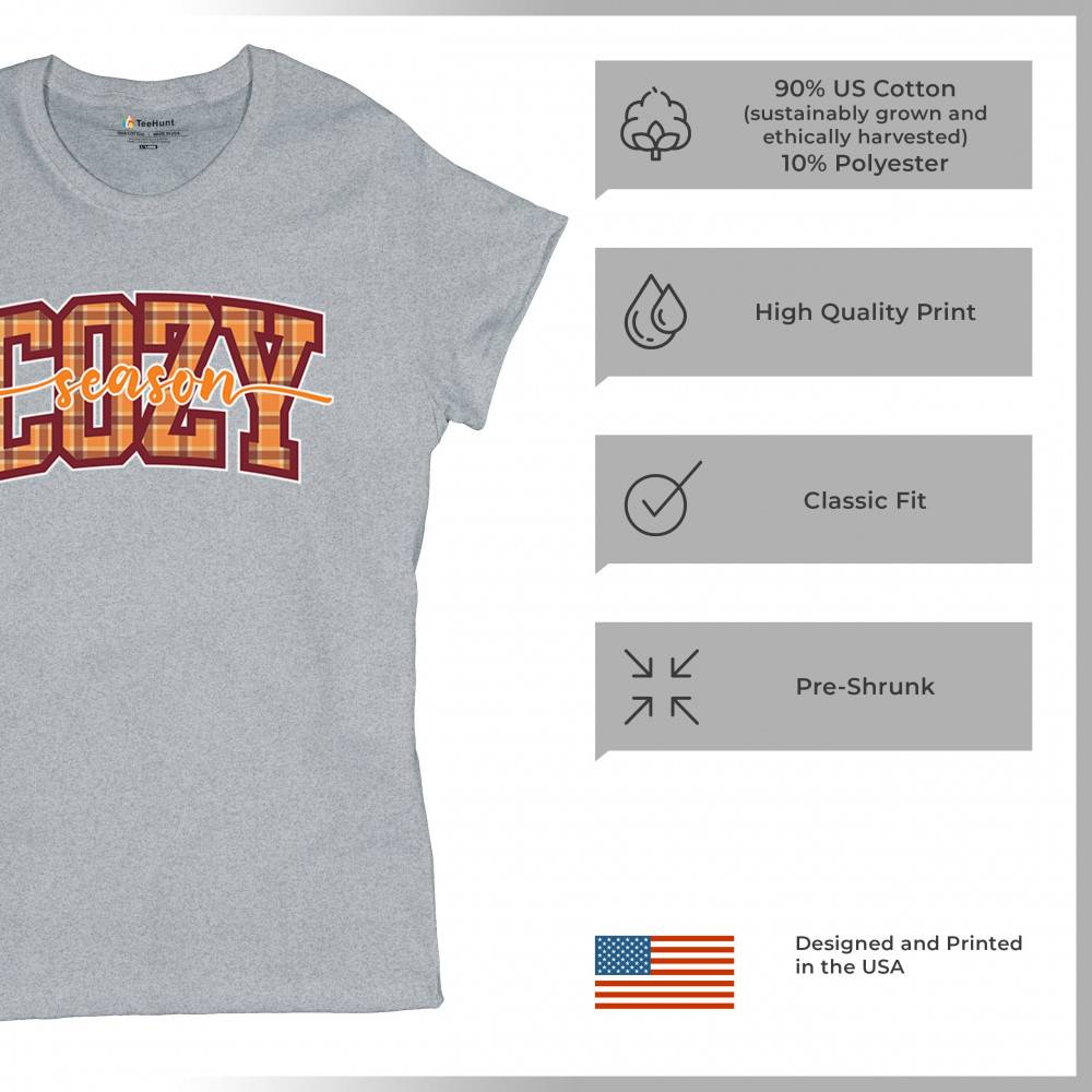 The "Cozy Season" plaid design is the perfect way to celebrate your love for all things autumn. With warm hues and a charming script, this print embodies the comfort and relaxation of the season. Whether you're spending chilly days at home or embracing the outdoor fall beauty, this design fits effortlessly into your wardrobe. It's an ideal gift for friends and family who appreciate the simple joys of autumn, including warm drinks, cozy sweaters, and the crispness of fall air.
