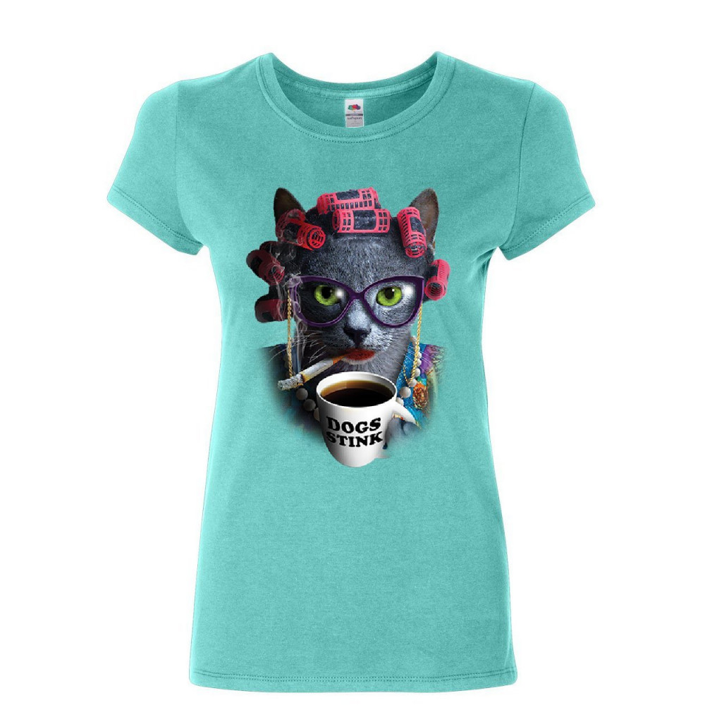 CRAZY OLD CAT LADY women's t-shirt dogs stink funny kitten cat lover pet shirt light blue