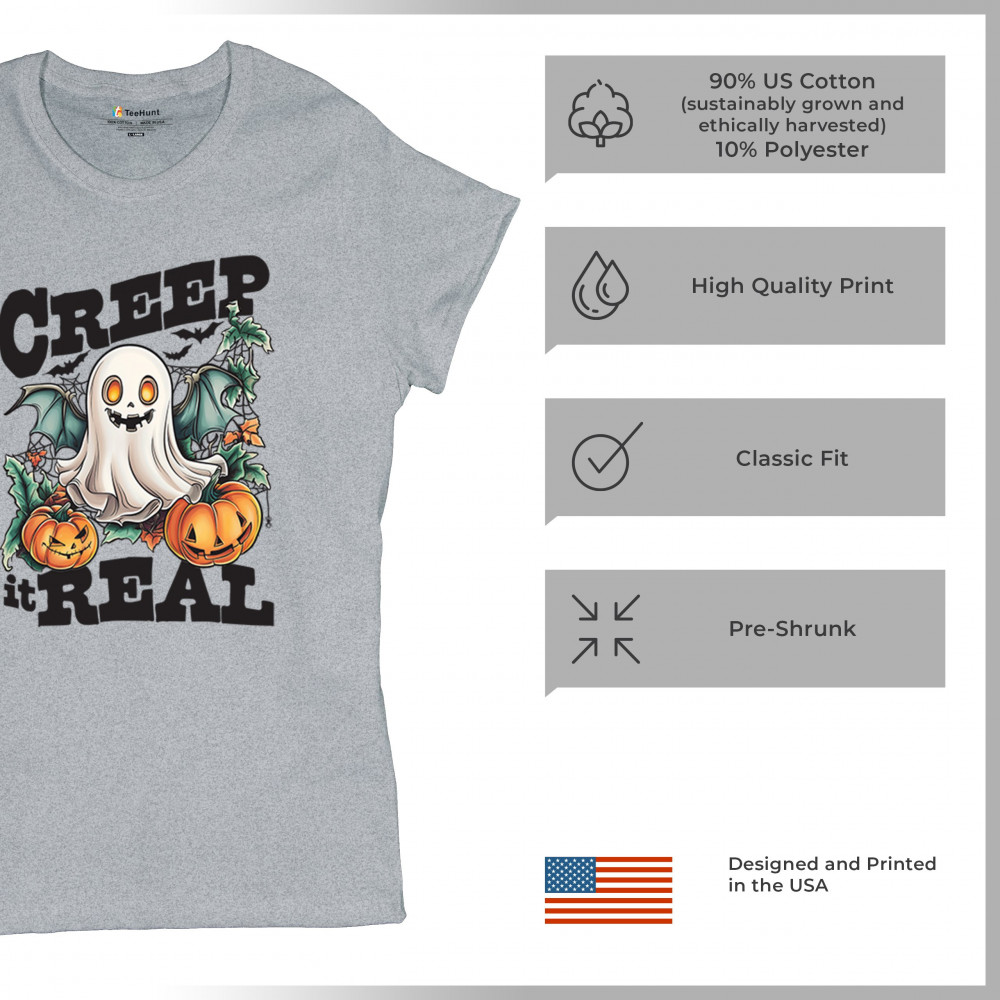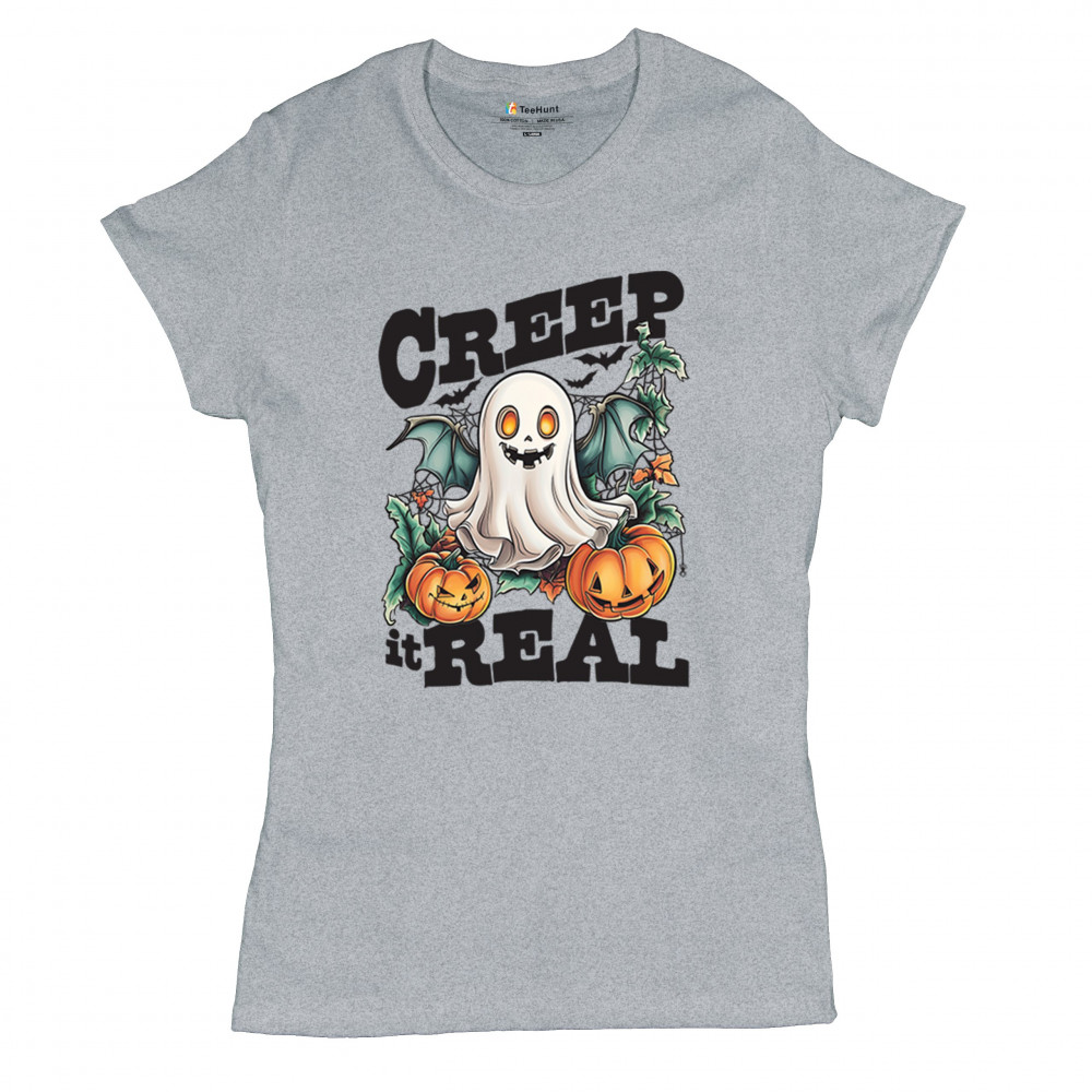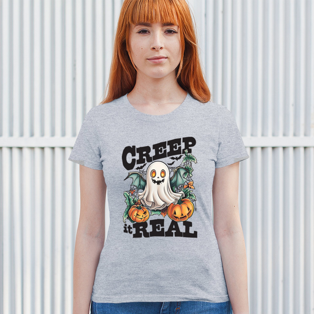 Celebrate Halloween with this playful "Creep It Real" ghost design, perfect for fall activities, pumpkin patches, and spooky parties!