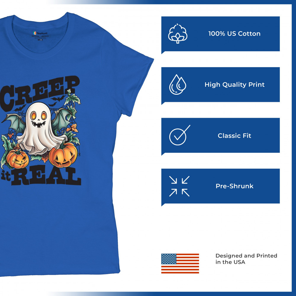 Celebrate Halloween with this playful "Creep It Real" ghost design, perfect for fall activities, pumpkin patches, and spooky parties!
