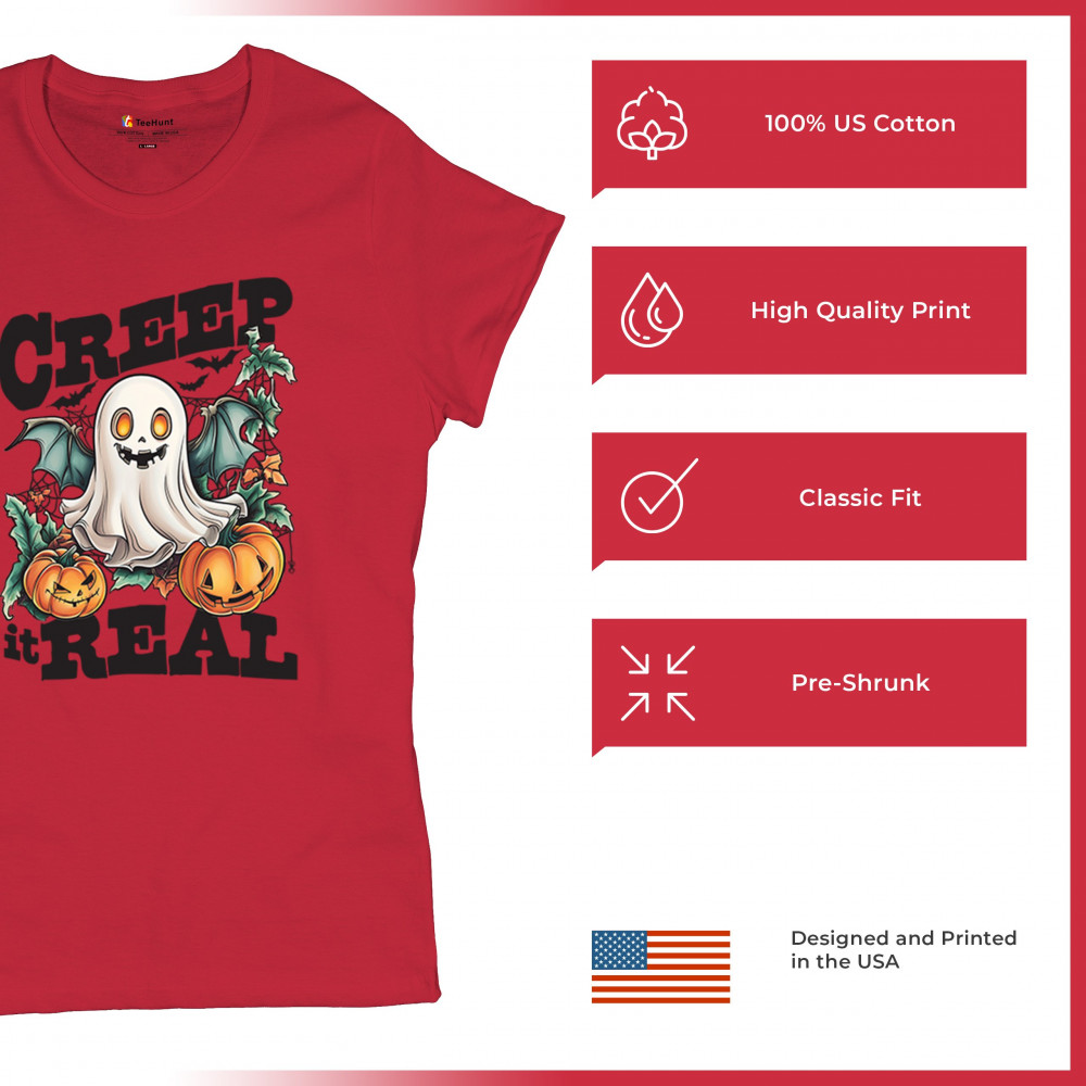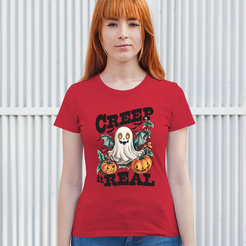 Celebrate Halloween with this playful "Creep It Real" ghost design, perfect for fall activities, pumpkin patches, and spooky parties!