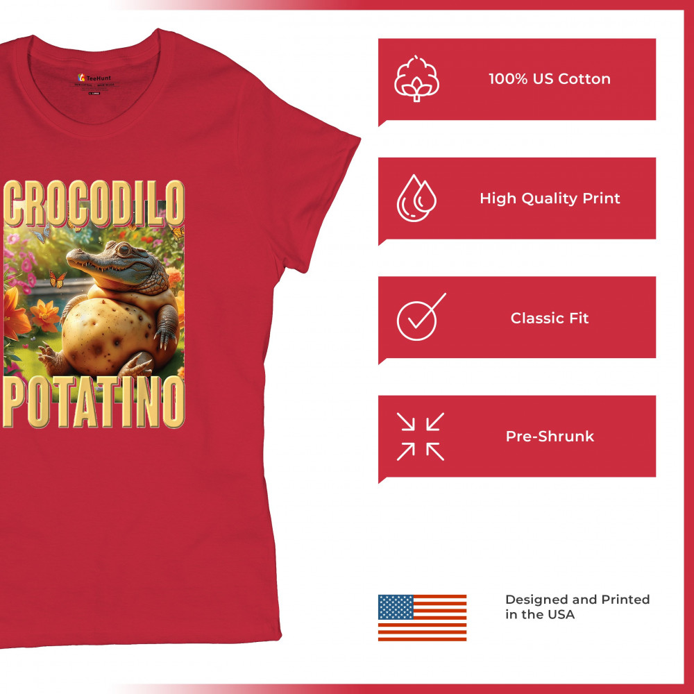 Crocodilo Potatino fuses cursed-core humor, animal mashup memes, TikTok absurdity, weirdcore aesthetic, and Gen Z viral fashion.