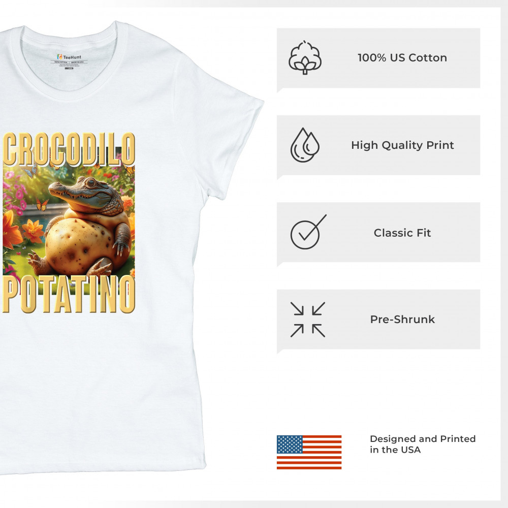 Crocodilo Potatino lives rent-free in a butterfly field of cursed bliss. This surreal croc-potato combo blends weirdcore aesthetic, viral Gen Z humor, ironic internet fashion, and TikTok meme absurdity. Built for lovers of odd animal mashups, cursed-core comedy, and viral brainrot streetwear.