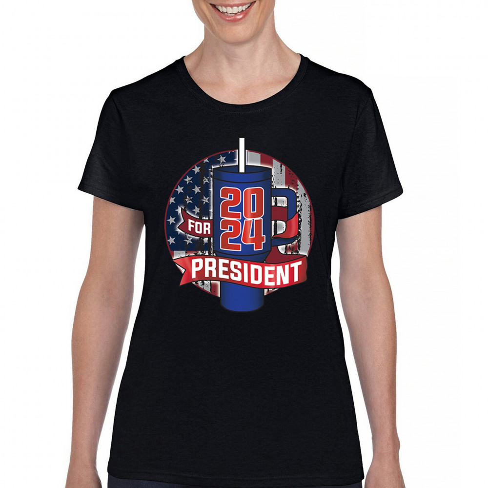 CUP FOR PRESIDENT 2024 t-shirt fun water bottle vote tumbler parody women's tee black