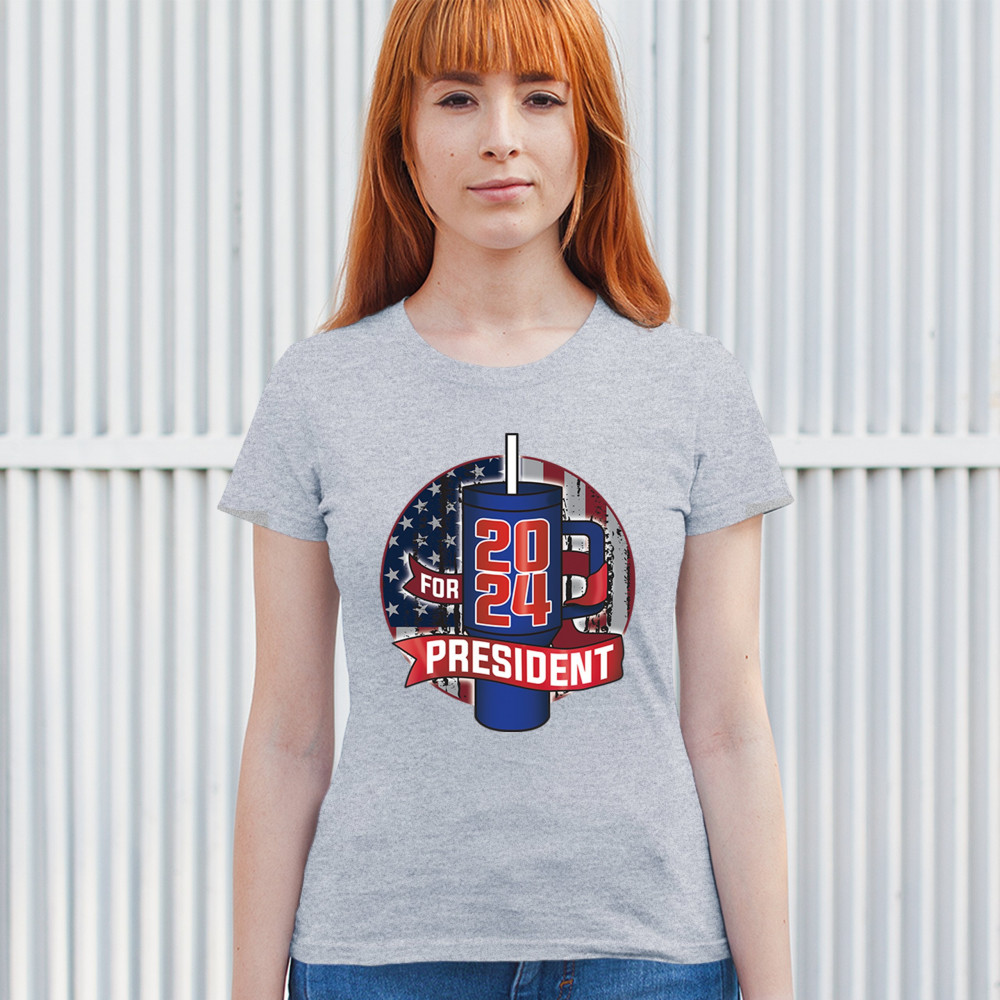 Celebrate the 2024 election season with a touch of humor with this clever design that parodies the popular water bottle craze. Perfect for those who enjoy political satire and want to make a statement, this design is ideal for casual wear, political rallies, and social gatherings. Show off your witty side with this playful and eye-catching graphic, and get ready to spark conversations and laughter wherever you go.