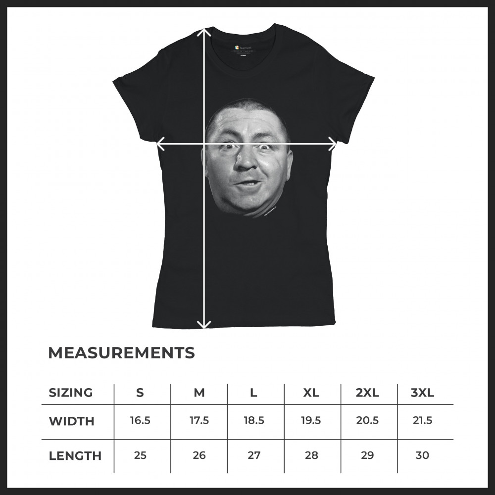 This bold Curly design from the Three Stooges is a monochromatic masterpiece, immortalizing his bewildered expression in high-contrast black and white. Perfect for classic comedy enthusiasts, this piece brings a dose of Curly's unforgettable face to your daily life. It's a conversation starter, a statement of humor, and a loving nod to the golden age of film comedy, capturing the essence of the Stooges' slapstick legacy in every detail.