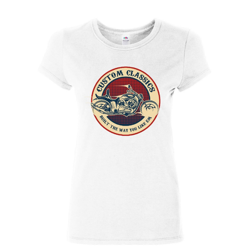 CUSTOM CLASSICS women's t-shirt chopper bobber biker rte 66 live to ride shirt white