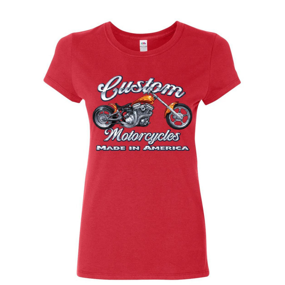 CUSTOM MOTORCYCLES women's t-shirt biker chopper american tradition usa shirt red