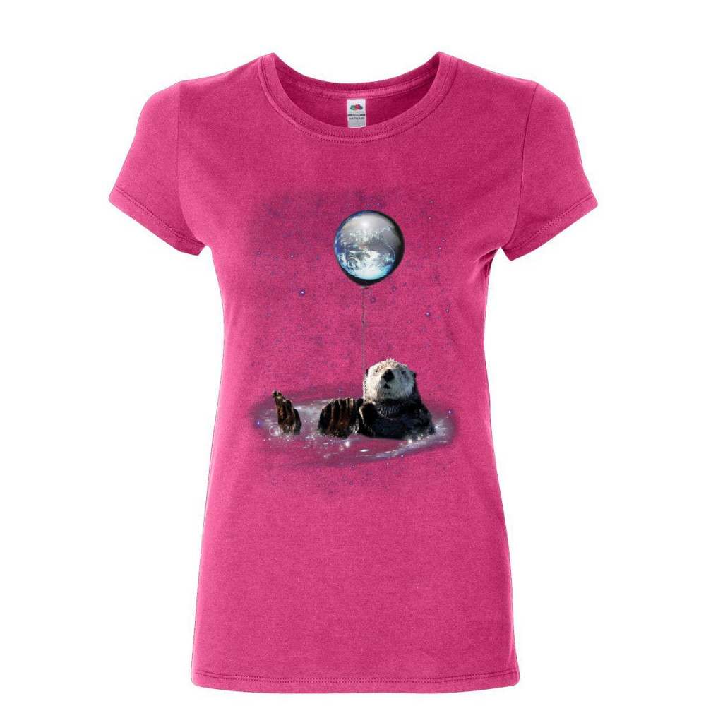 OTTER SPACE cute otter bathing in space women's t-shirt funny universe galaxy earth shirt hot pink