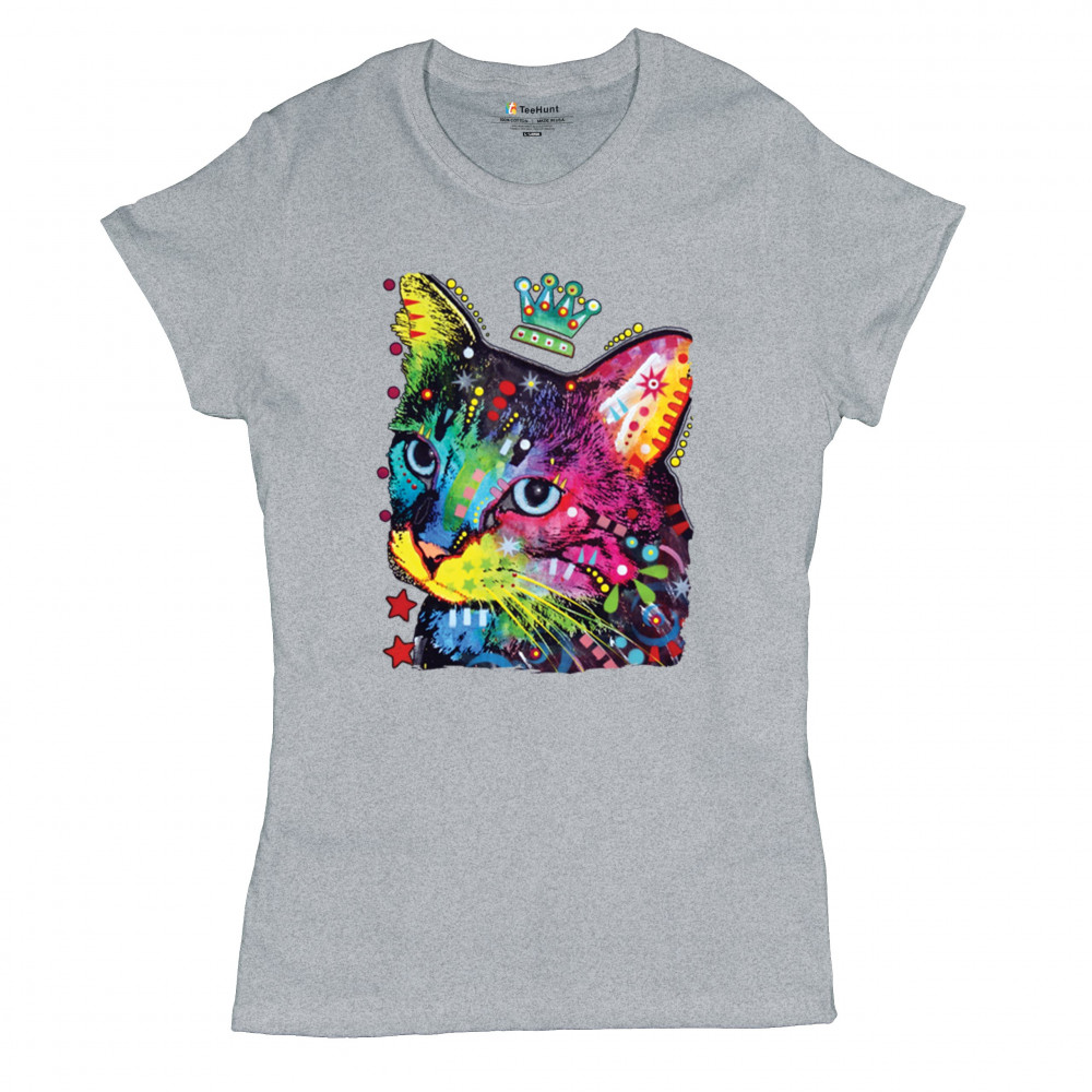 CUTE THINKING CROWNED CAT t-shirt dean russo colorful kitten women's tee gray