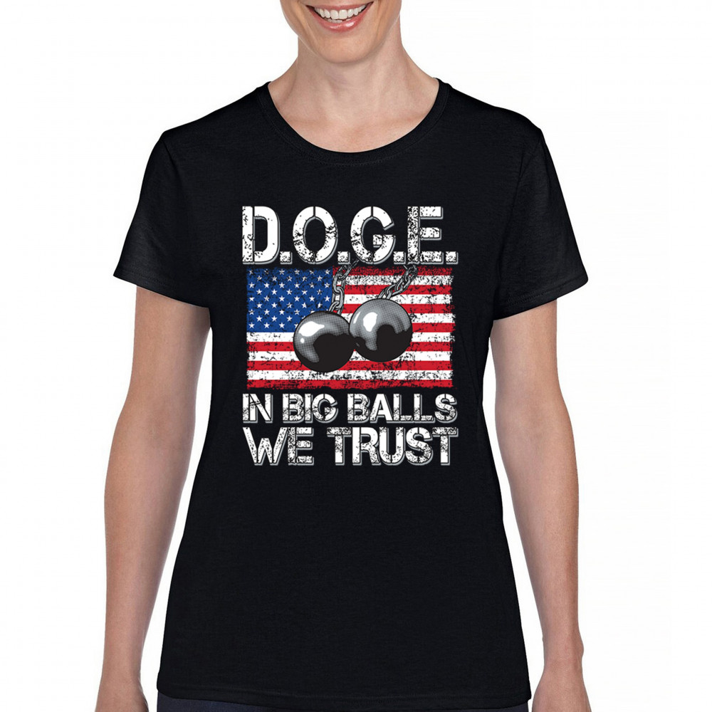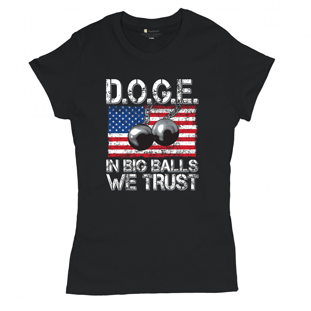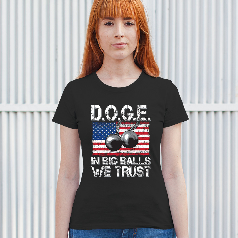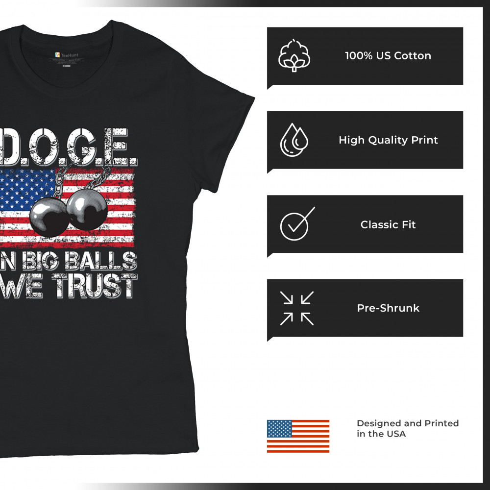 The D.O.G.E. In Big Balls We Trust design blends patriotic grit with sharp political satire. Featuring chained wrecking balls over a distressed American flag, this graphic hits hard. Perfect for conservative men, bold personalities, and political events like rallies, debates, and meetups.