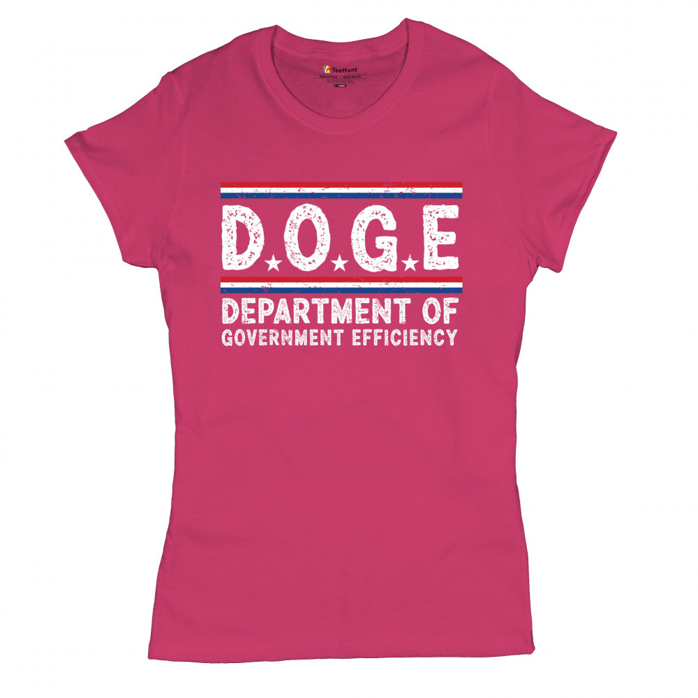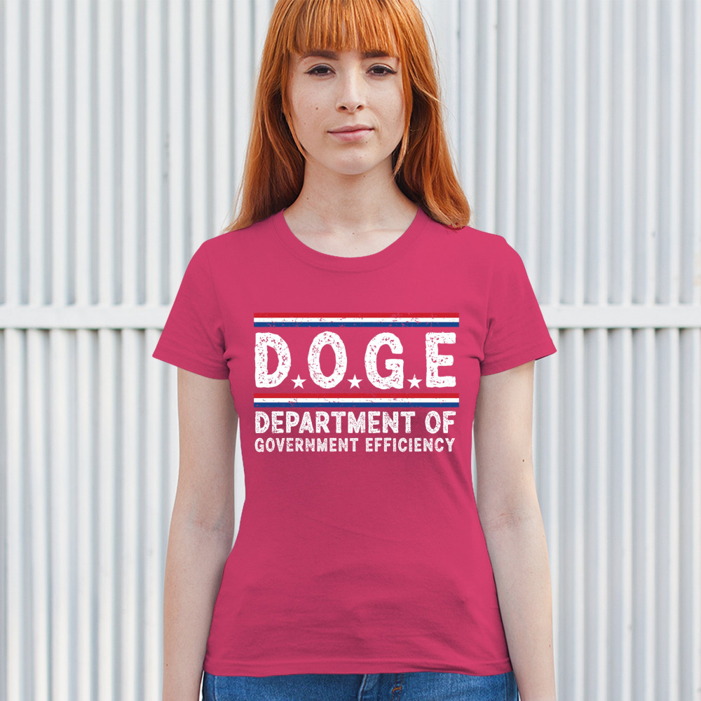 The D.O.G.E. – Department of Government Efficiency design features distressed bold text, stars, and stripes in patriotic red, white, and blue. Combining political parody with classic Americana flair, it’s perfect for conservatives, libertarians, and anyone critical of big government. Great for protests, events, or just everyday bold statements.