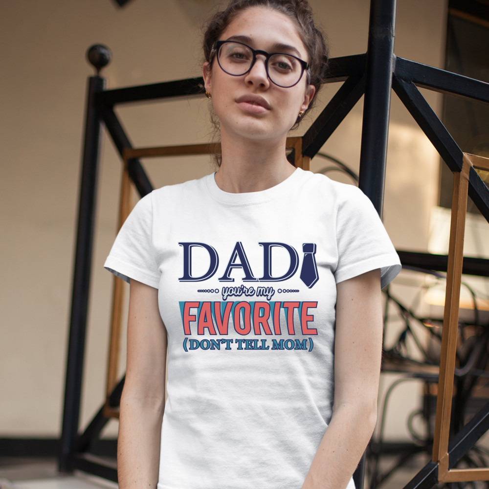 DAD YOU'RE MY FAVORITE (DON'T TELL MOM) t-shirt daddy father's day women's tee white