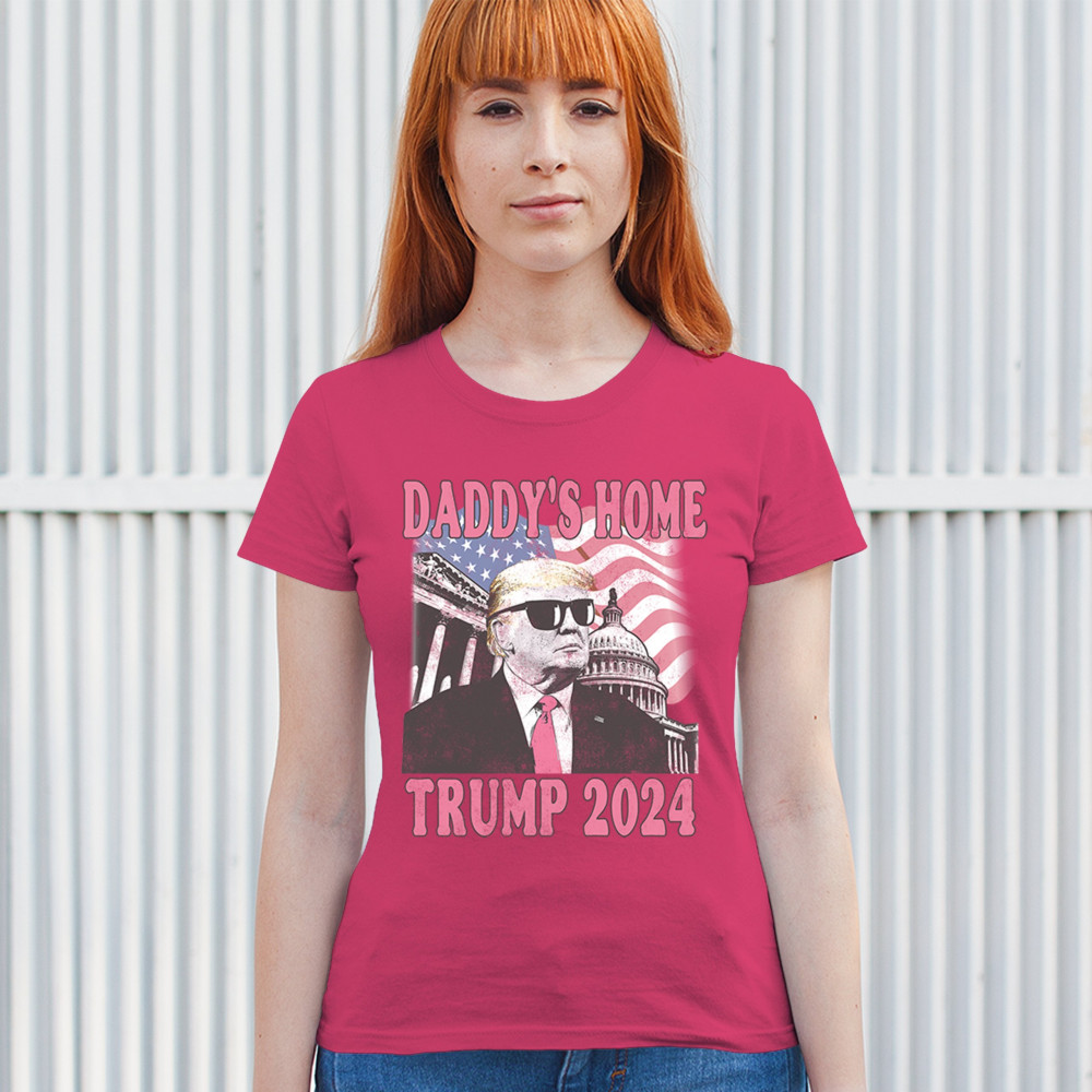 Support Donald Trump with our "Daddy's Home Trump 2024" design, showcasing strength and patriotism. Perfect for conservative supporters.