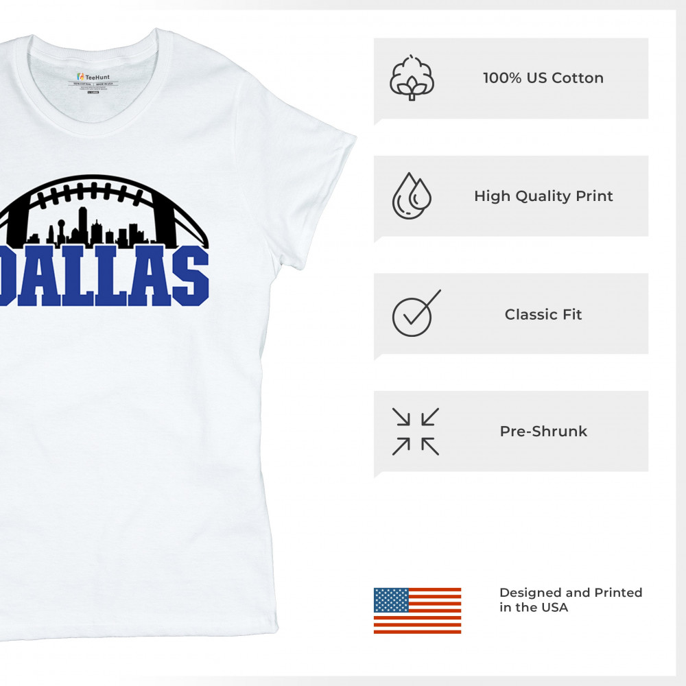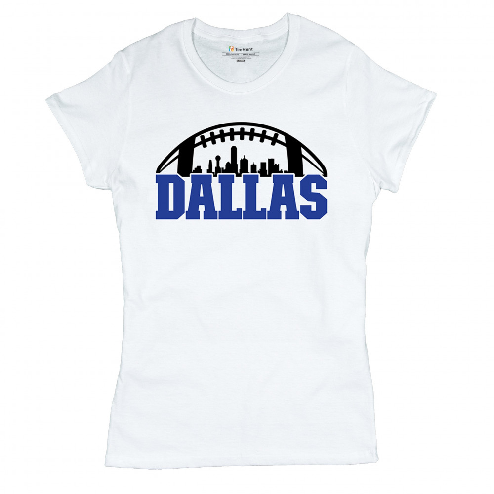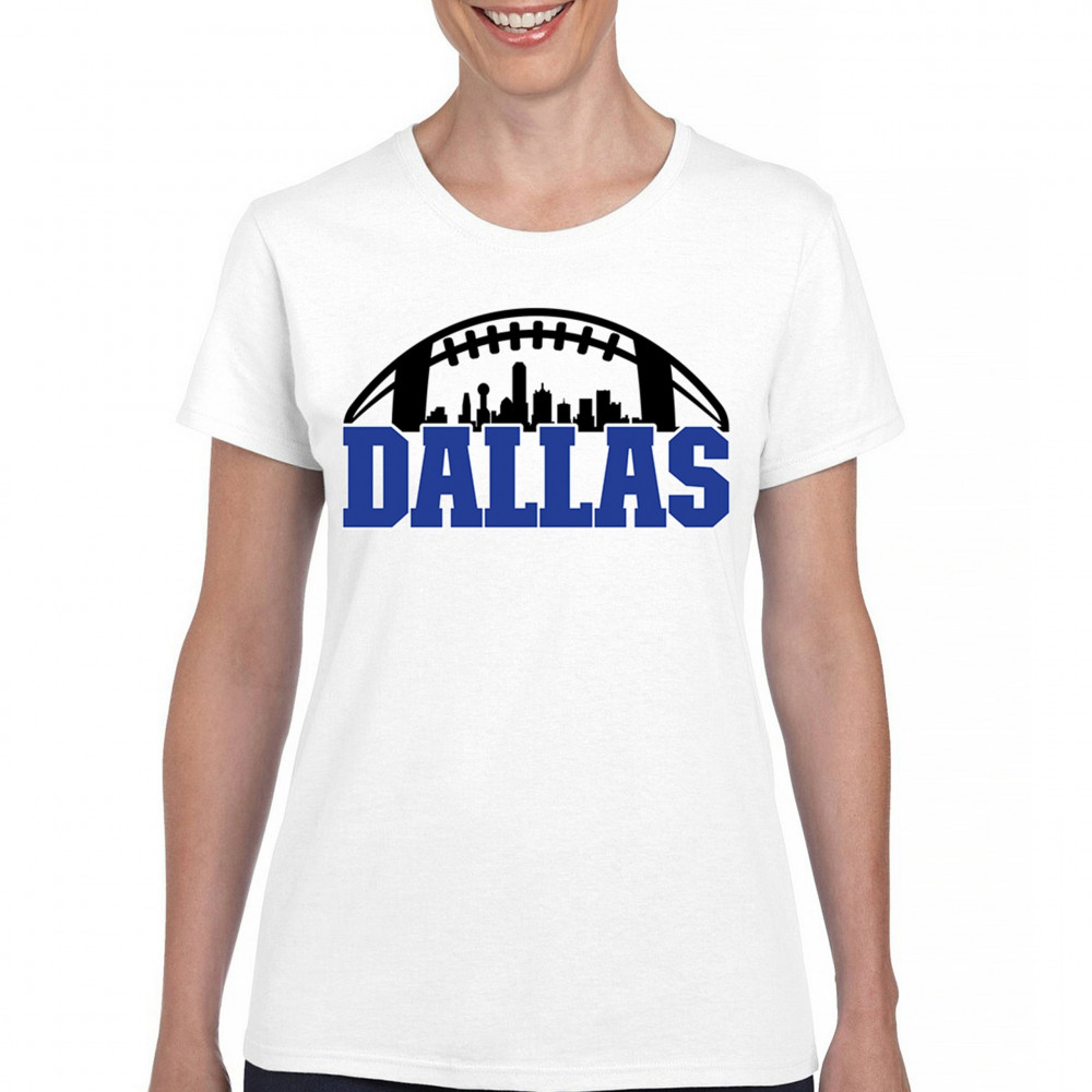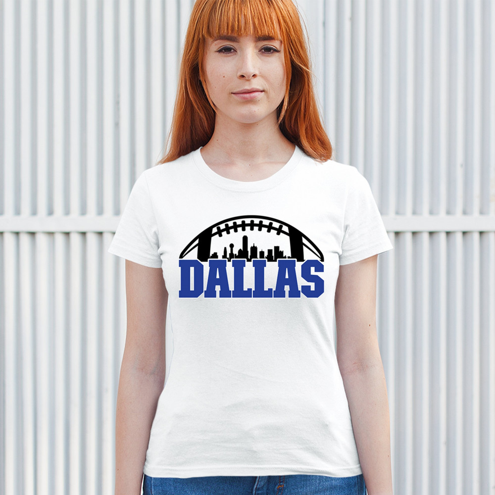 Show off your Dallas pride with a bold football-themed design featuring the city's skyline. Perfect for game days, tailgates, and passionate fans.