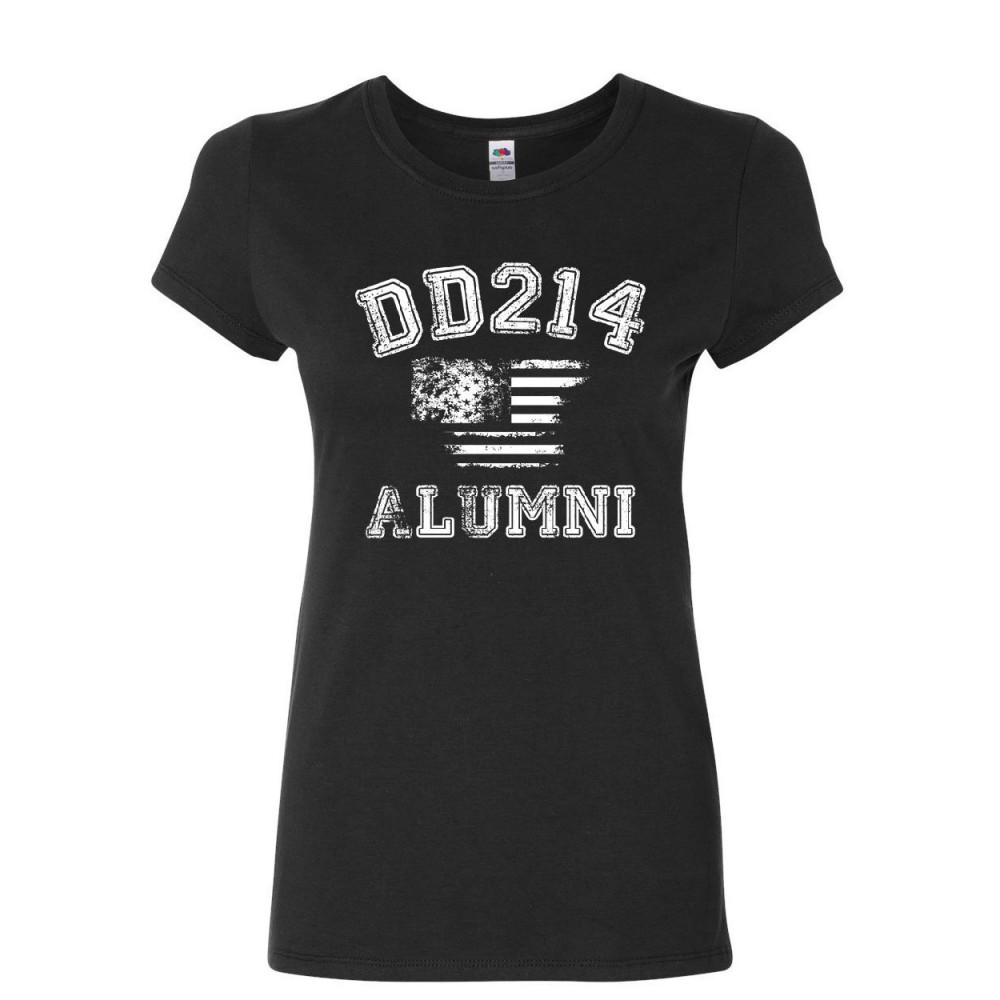 DD214 ALUMNI distressed american flag women's t-shirt military veteran shirt black