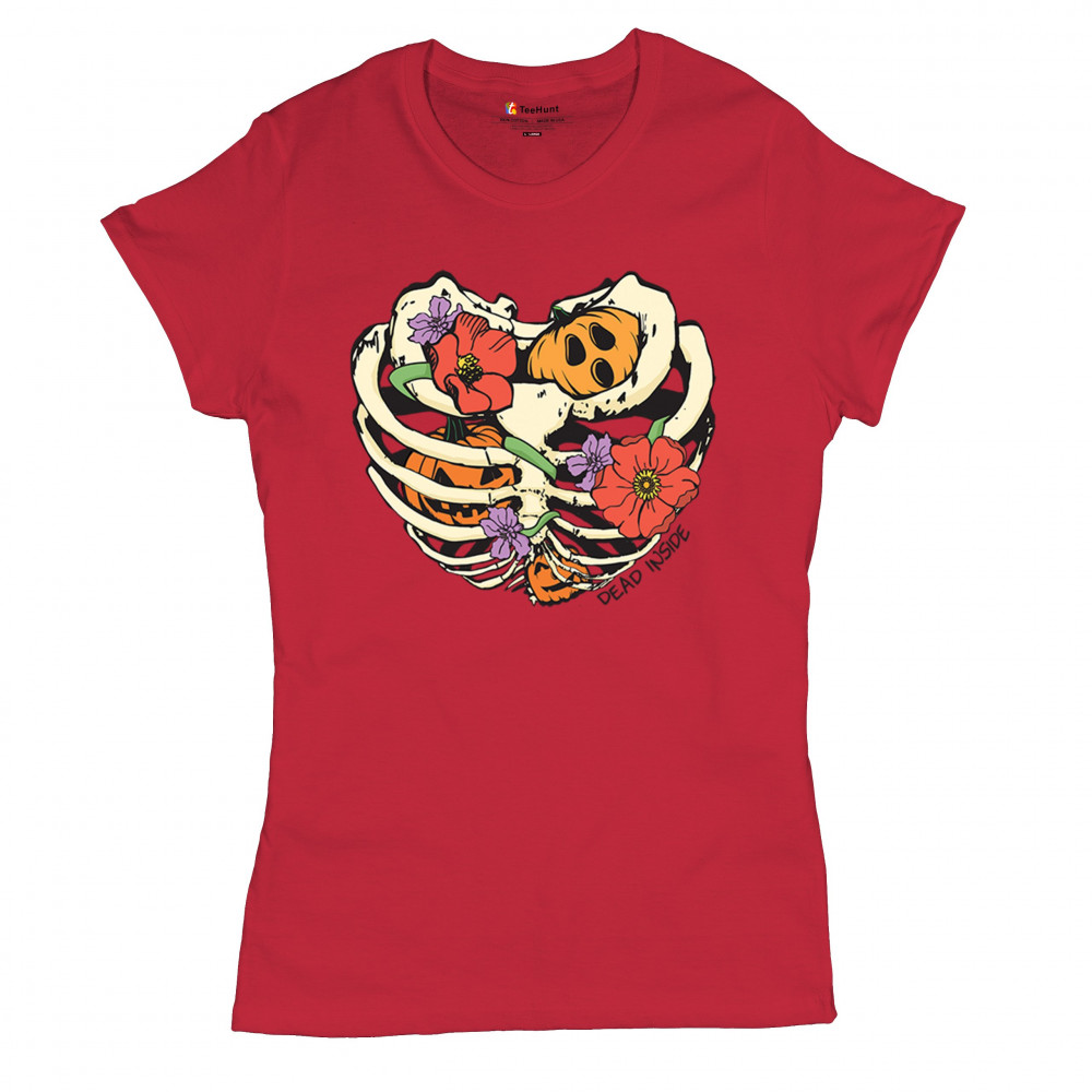 Celebrate Halloween with a quirky and cute design featuring a skeleton ribcage filled with pumpkins and flowers. Perfect for spooky season lovers!