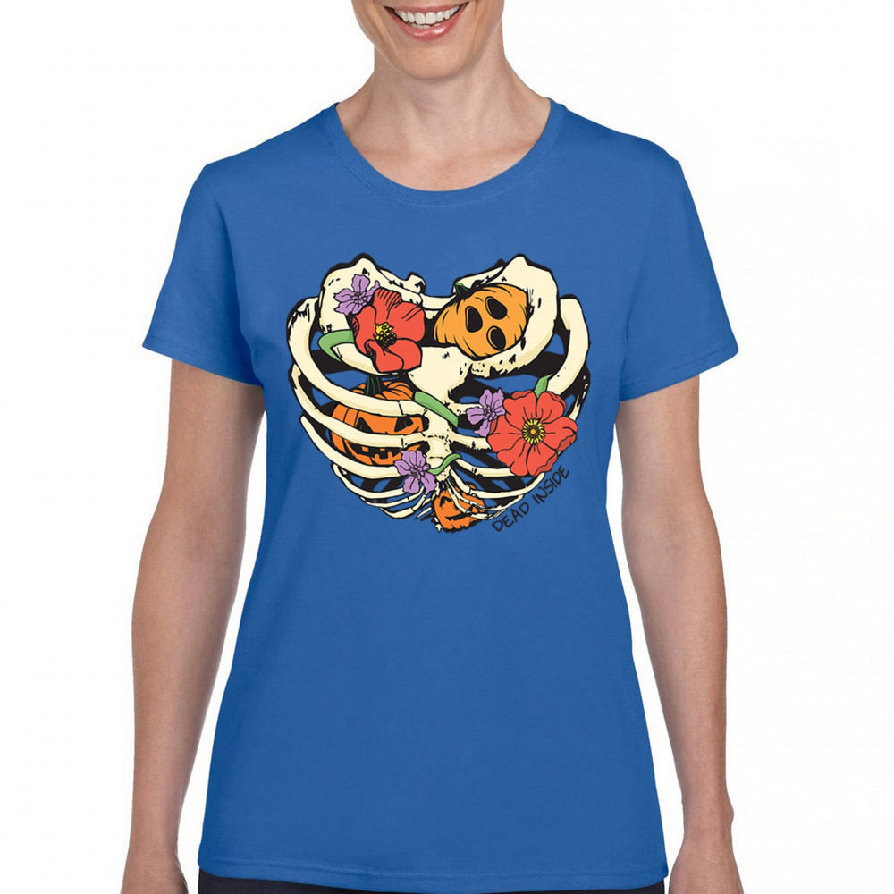 Celebrate Halloween with a quirky and cute design featuring a skeleton ribcage filled with pumpkins and flowers. Perfect for spooky season lovers!