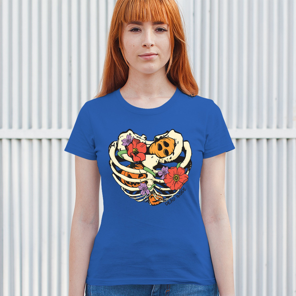 This Halloween-inspired design is sure to turn heads. The image features a skeleton ribcage with pumpkins and flowers intertwined, giving it a quirky yet cute appearance. Whether you’re preparing for a Halloween bash, getting ready for a night of trick-or-treating, or just want to celebrate the fall season in style, this graphic is a must-have. With its mix of spooky and sweet, it's perfect for anyone who loves a fun and festive look for the Halloween season.