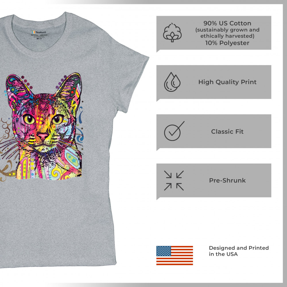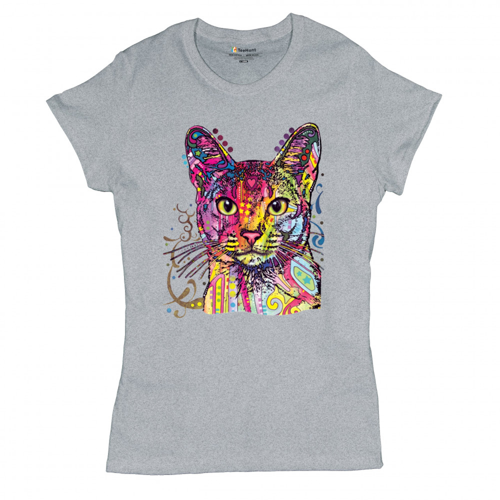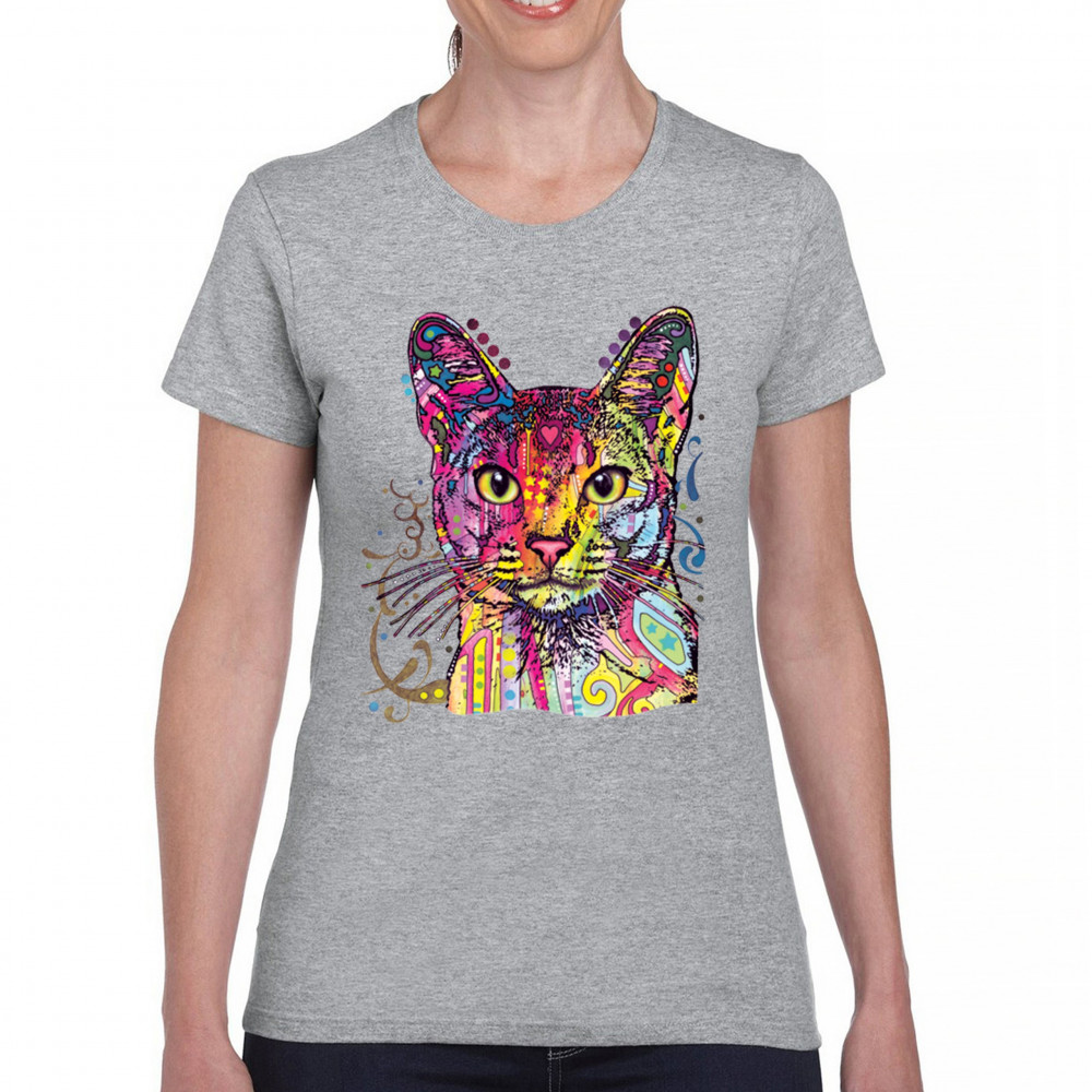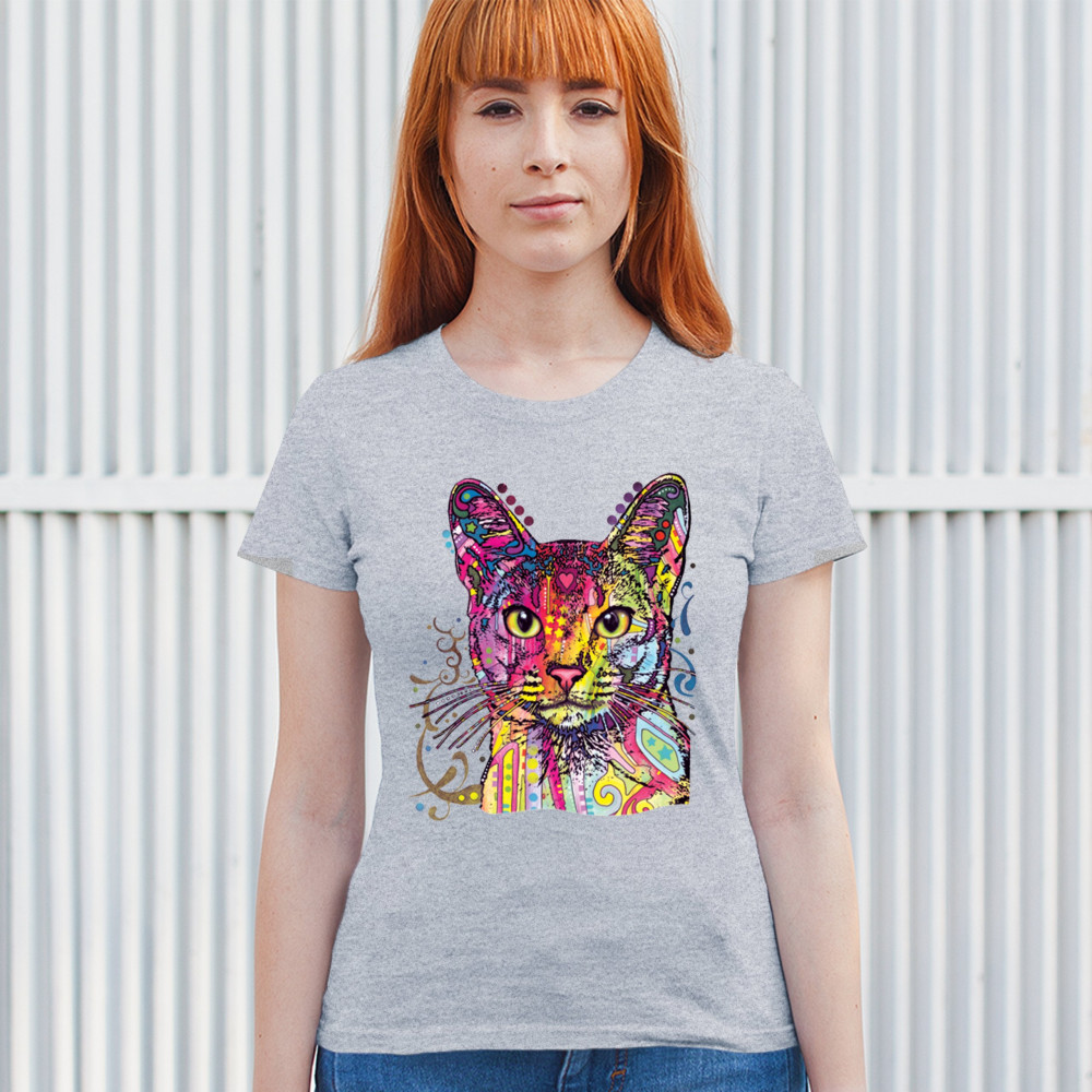 DEAN RUSSO ABYSSINIAN CAT t-shirt colorful cute kitten pet women's tee gray