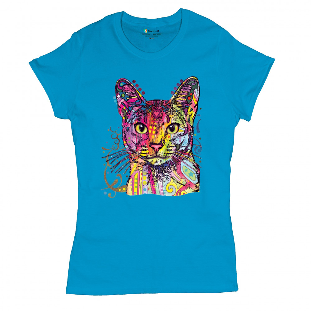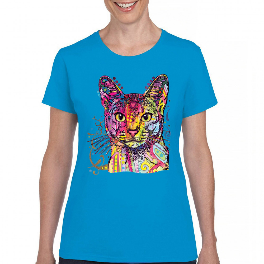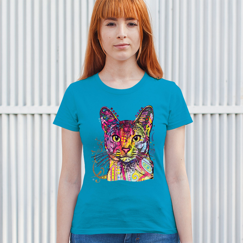 DEAN RUSSO ABYSSINIAN CAT t-shirt colorful cute kitten pet women's tee light blue