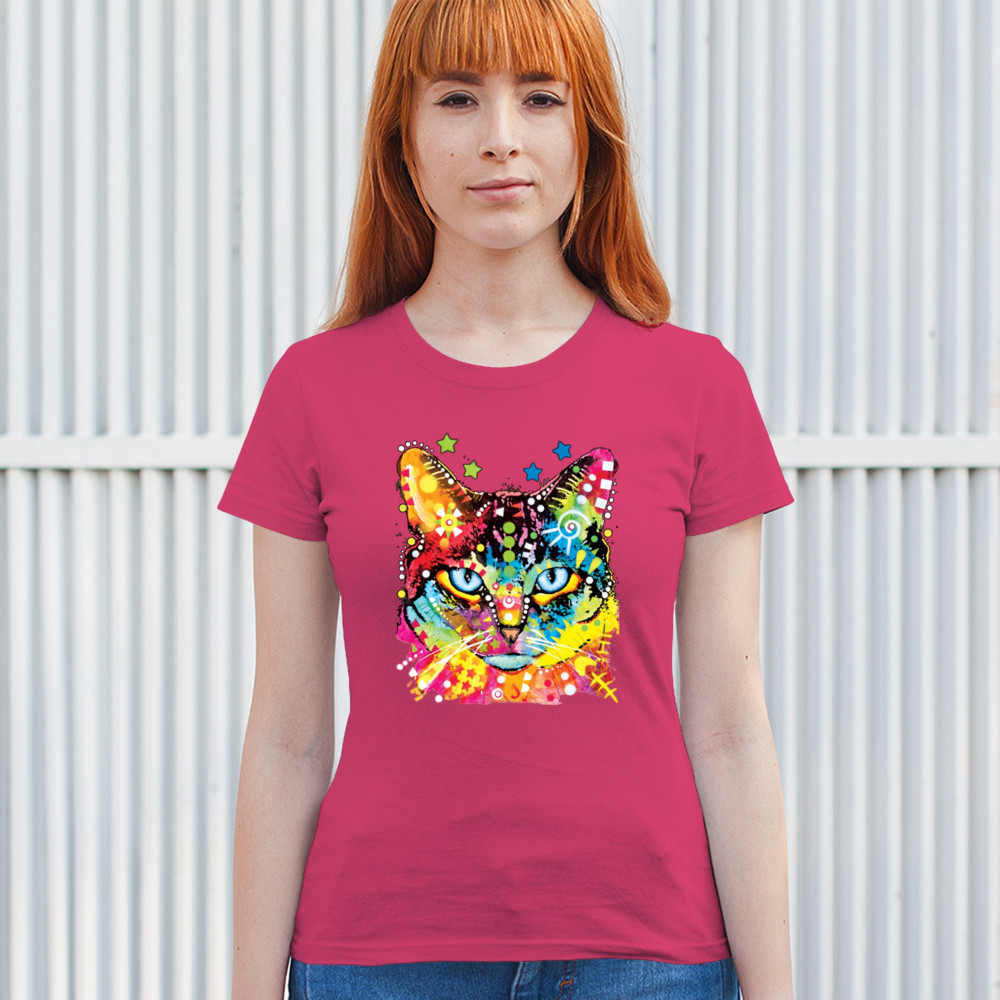 DEAN RUSSO BLUE EYES CAT t-shirt colorful cute kitten pet women's tee pink