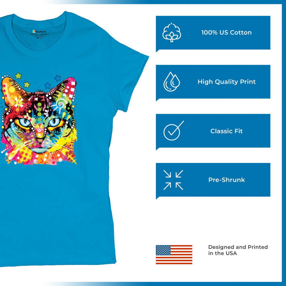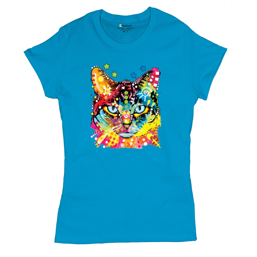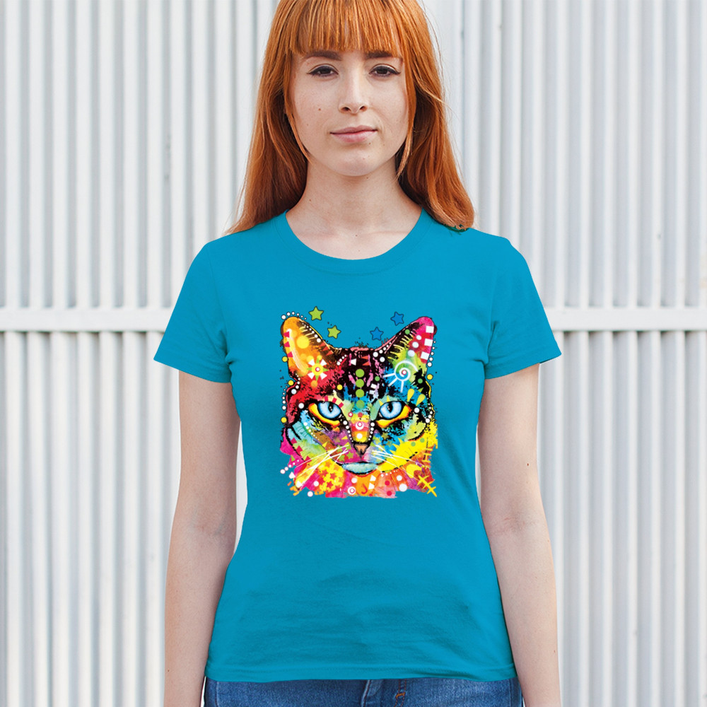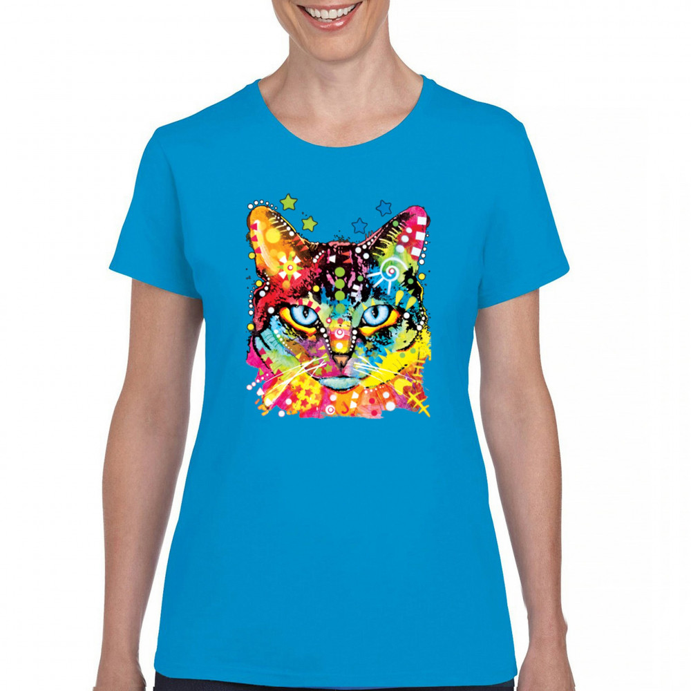 DEAN RUSSO BLUE EYES CAT t-shirt colorful cute kitten pet women's tee light blue