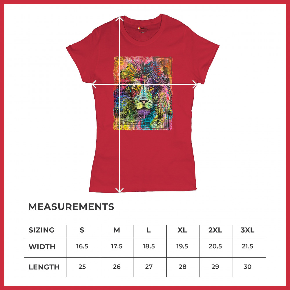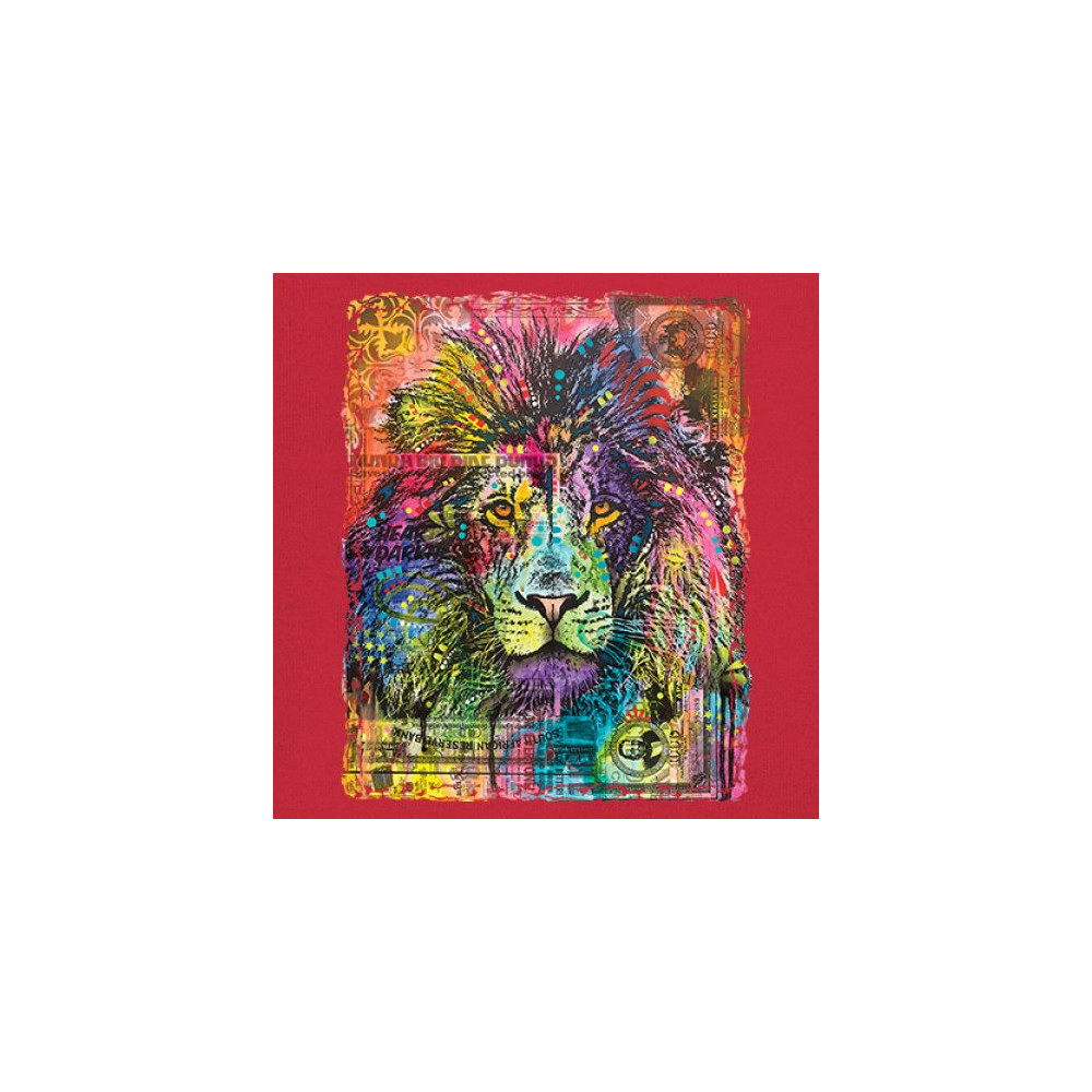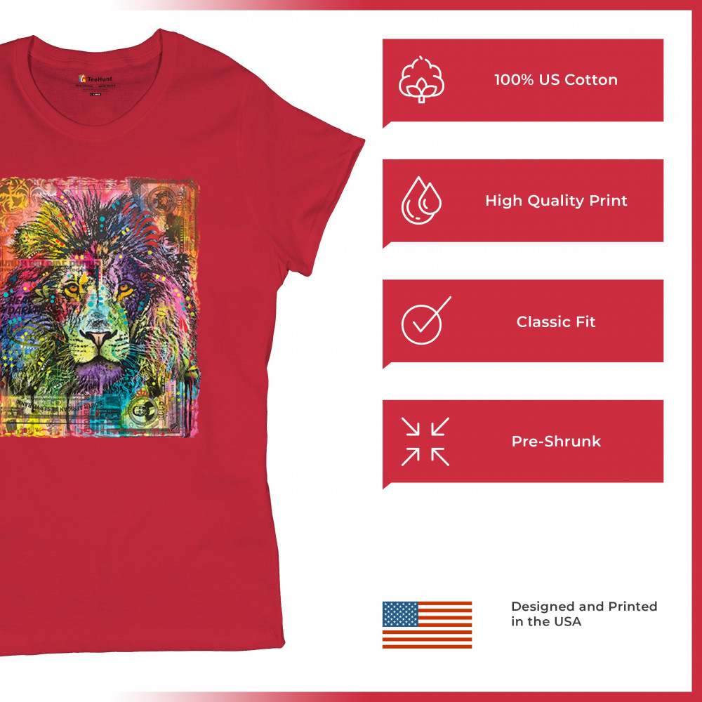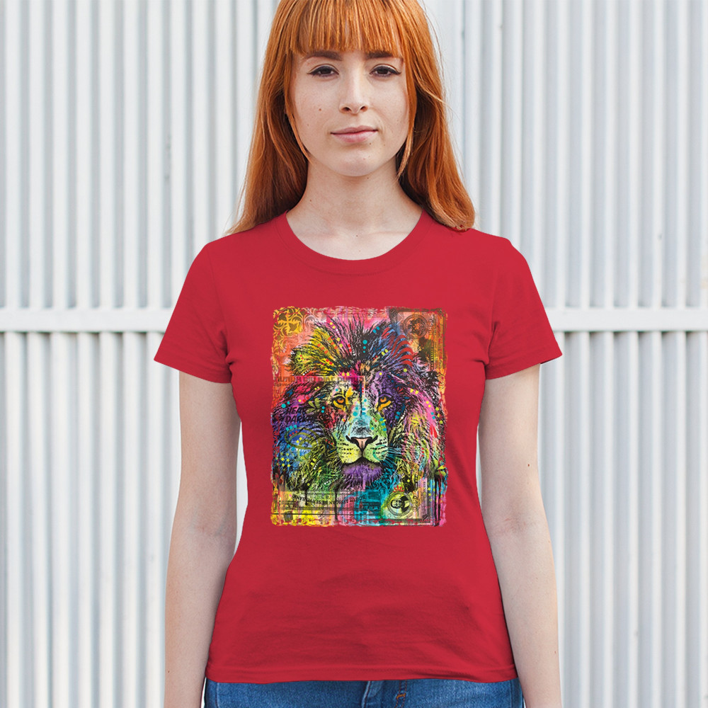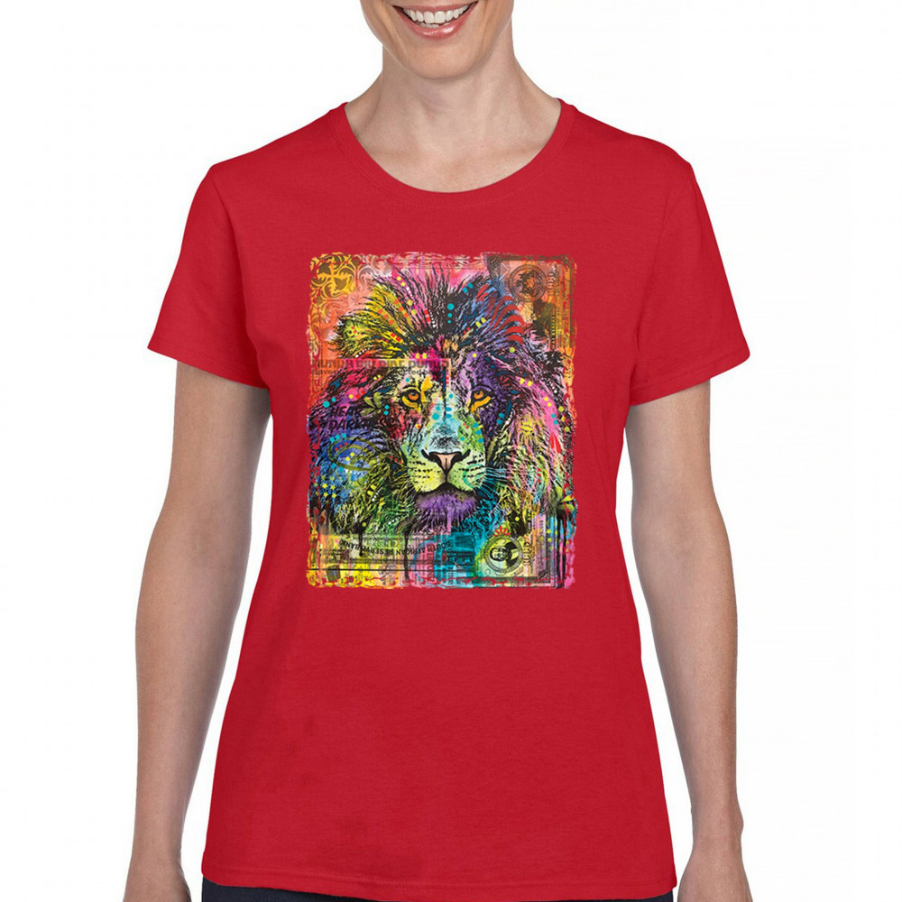 DEAN RUSSO COLORFUL LION HEAD t-shirt wild life king roar big cat women's tee red