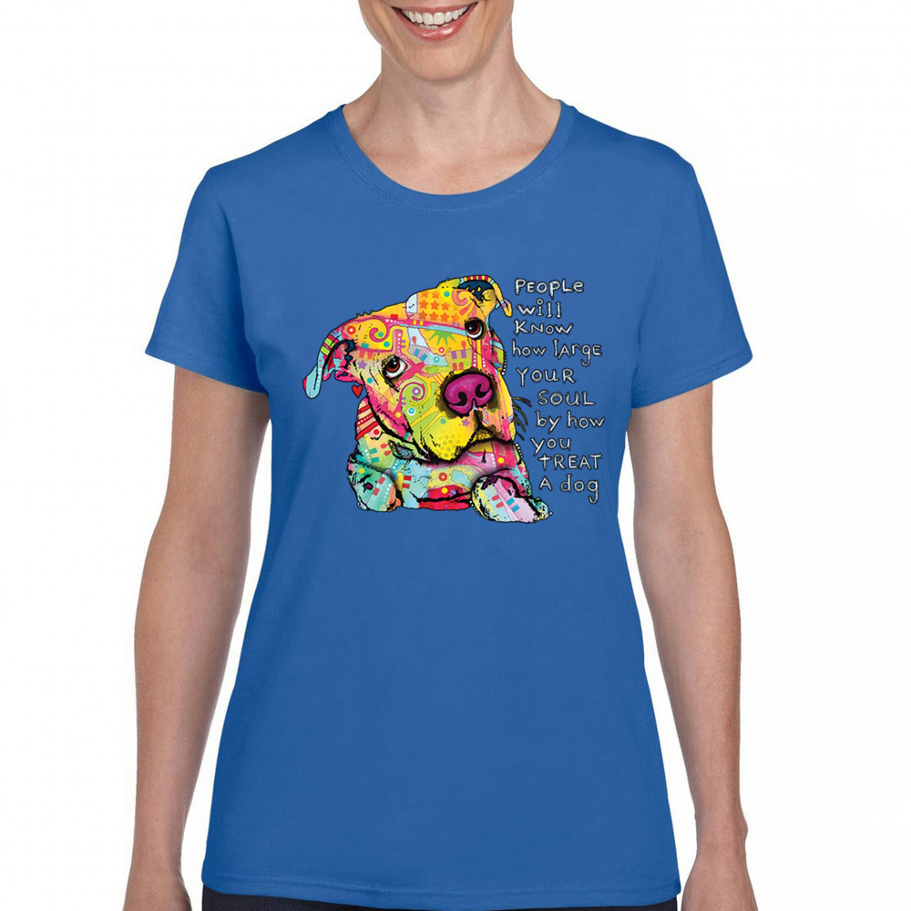 DEAN RUSSO COLORFUL NEON DOG t-shirt how large your soul is pet women's tee royal blue