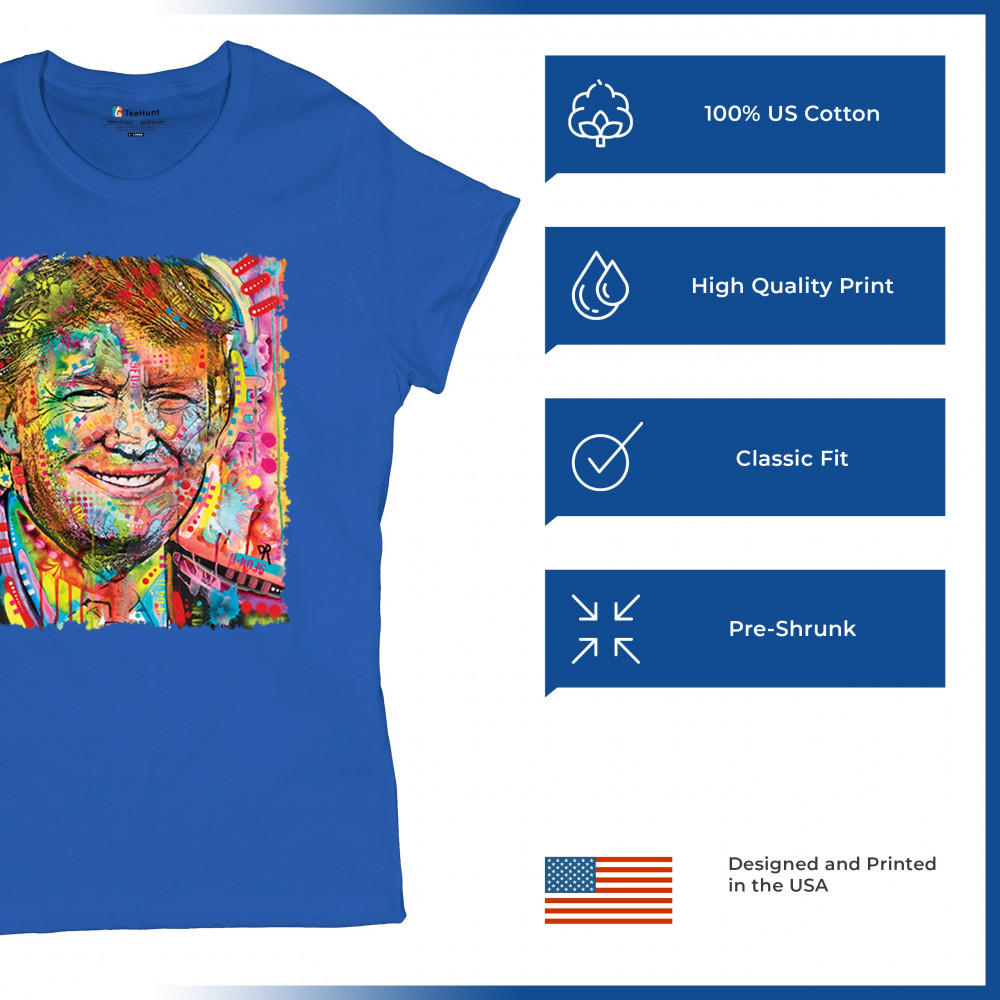 DEAN RUSSO COLORFUL TRUMP t-shirt 45 american president 2024 women's tee royal blue