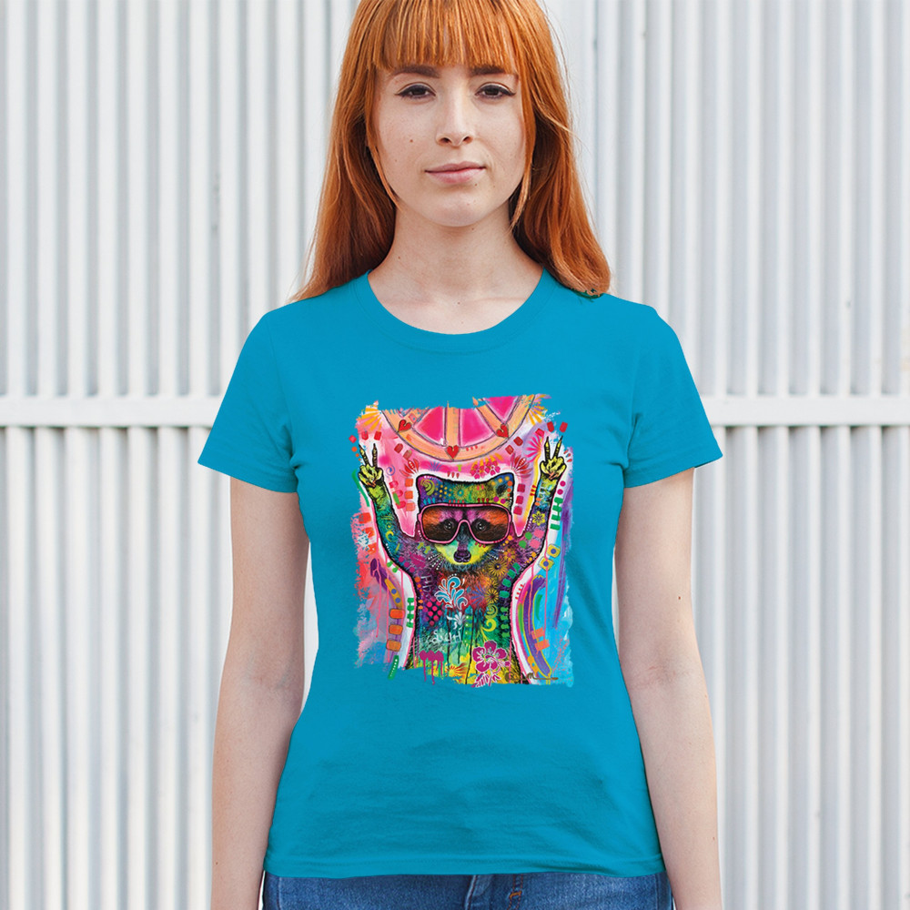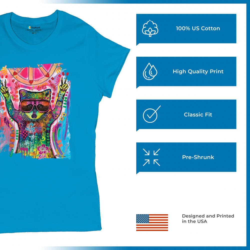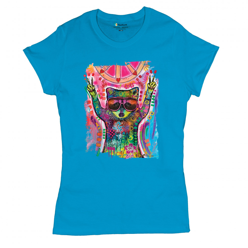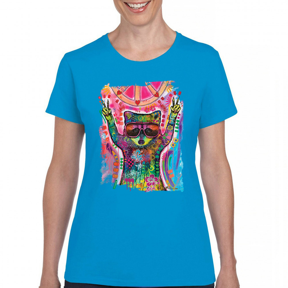 DEAN RUSSO COSMIC TRASH PANDA t-shirt funny weird hippie women's tee light blue