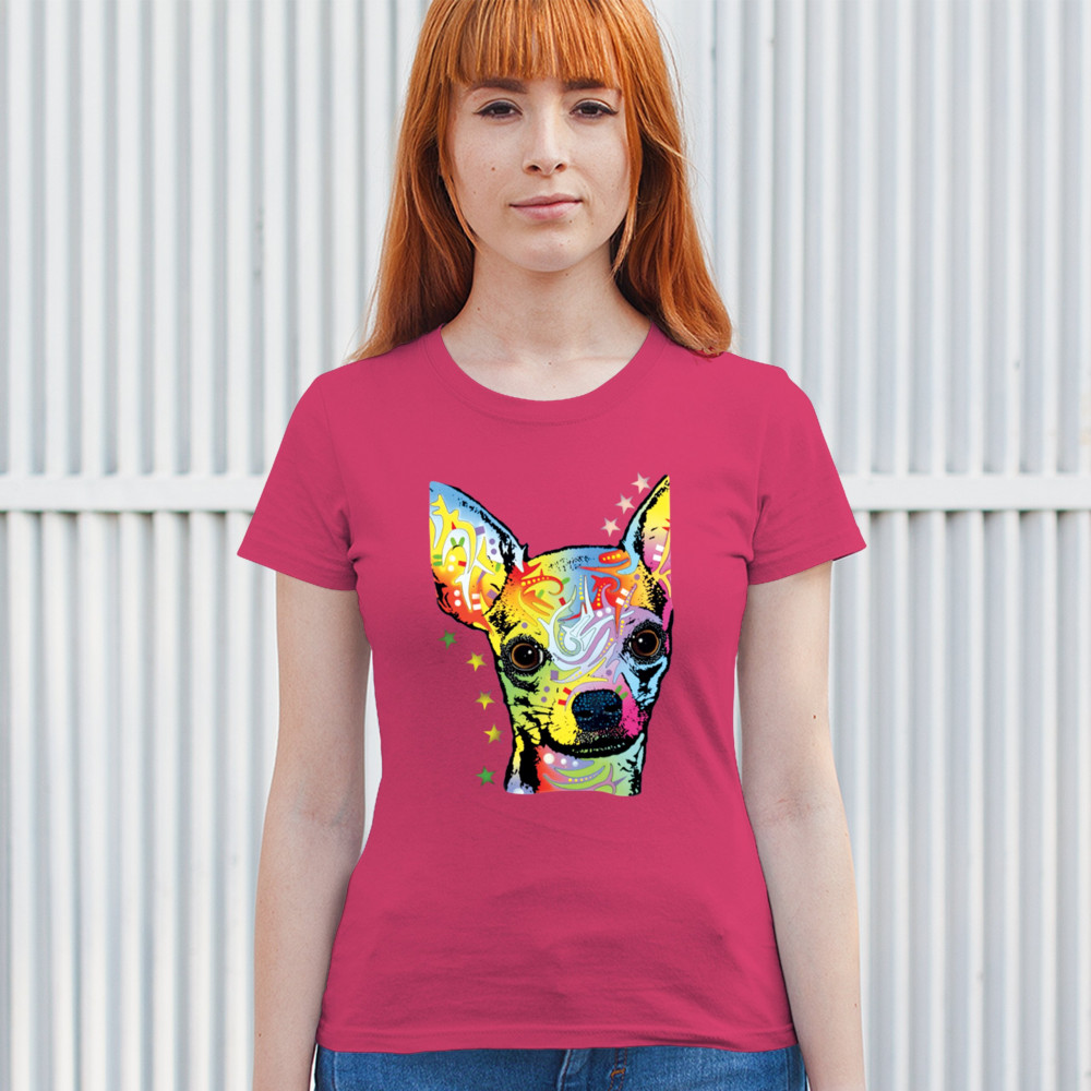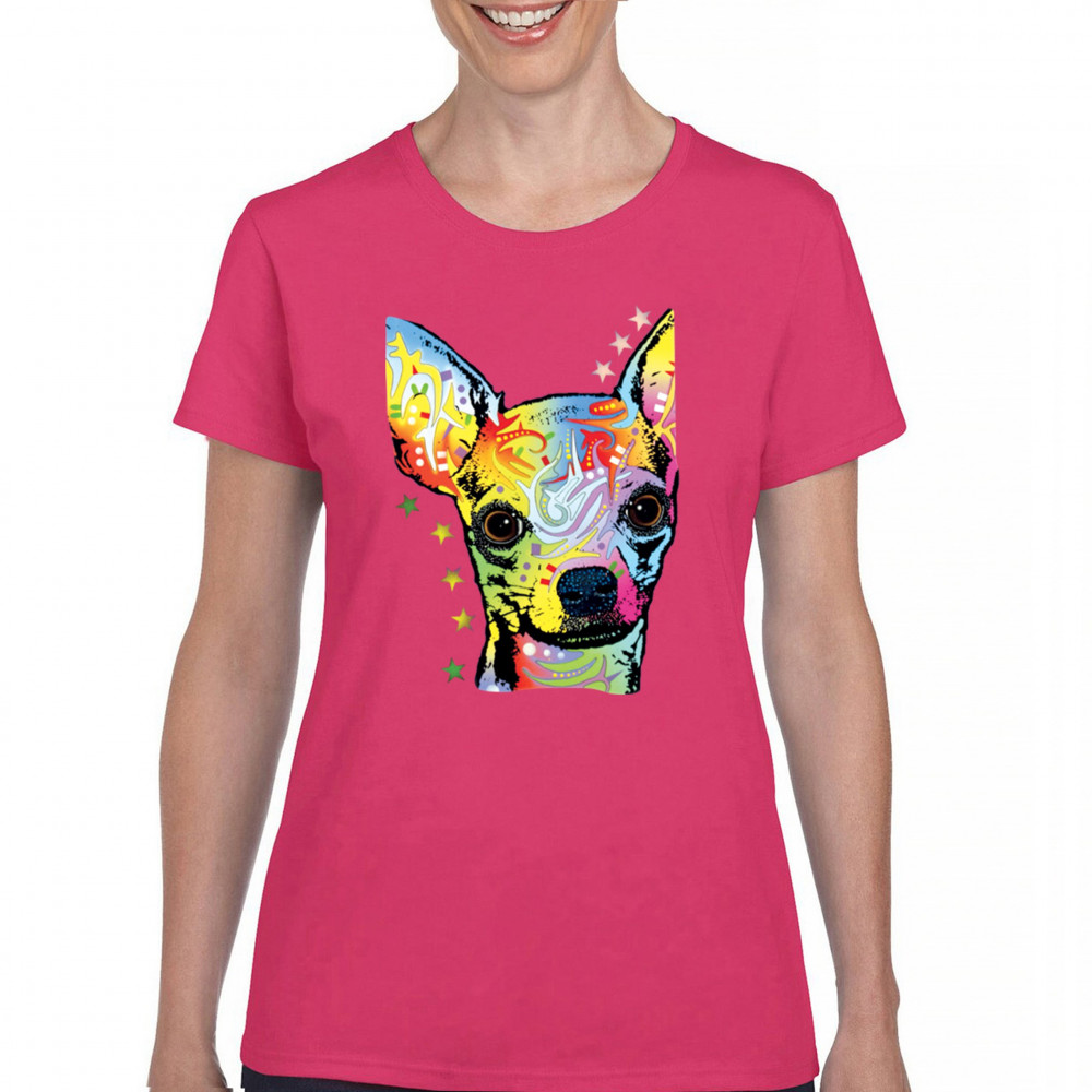 DEAN RUSSO CUTE CHIHUAHUA t-shirt neon colorful small dog pet women's tee pink