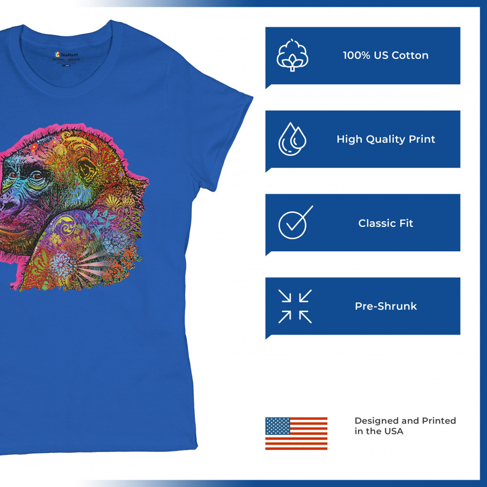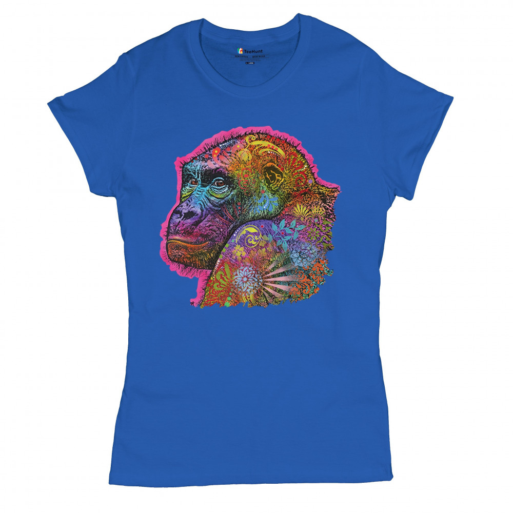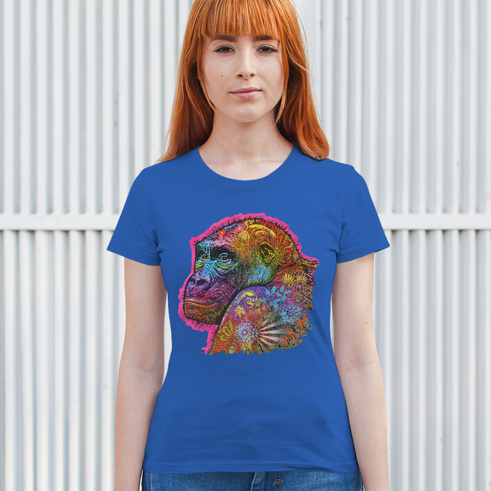DEAN RUSSO CUTE GORILLA t-shirt colorful neon silverback ape art women's tee royal blue
