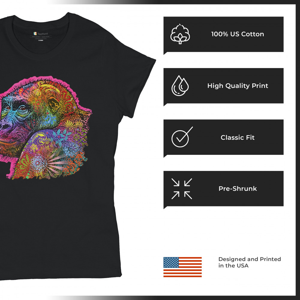 DEAN RUSSO CUTE GORILLA t-shirt colorful neon silverback ape art women's tee black
