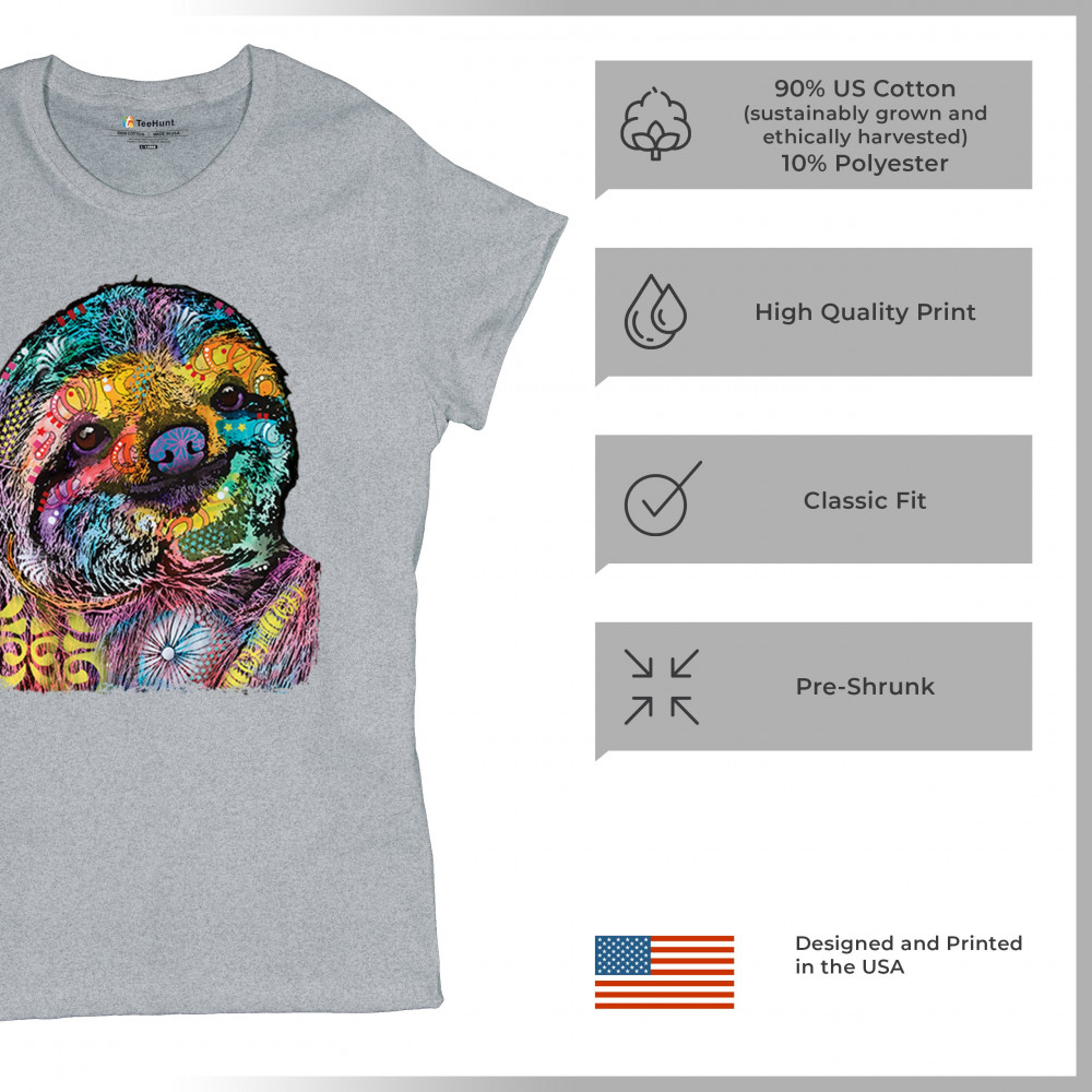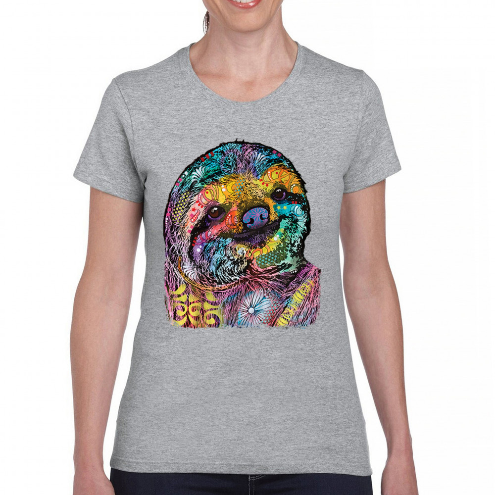 DEAN RUSSO CUTE LAZY SLOTH t-shirt funny wild life colorful women's tee gray