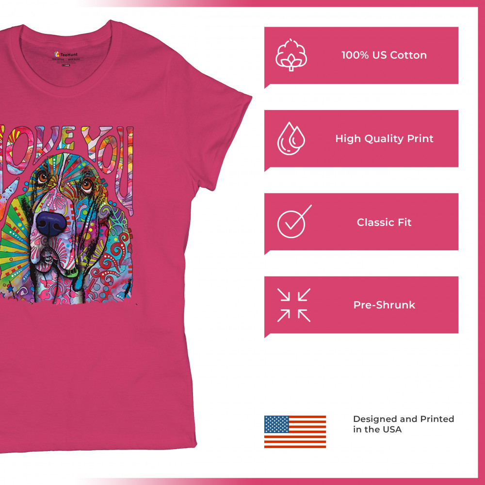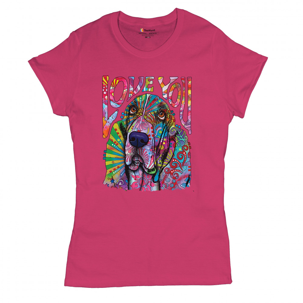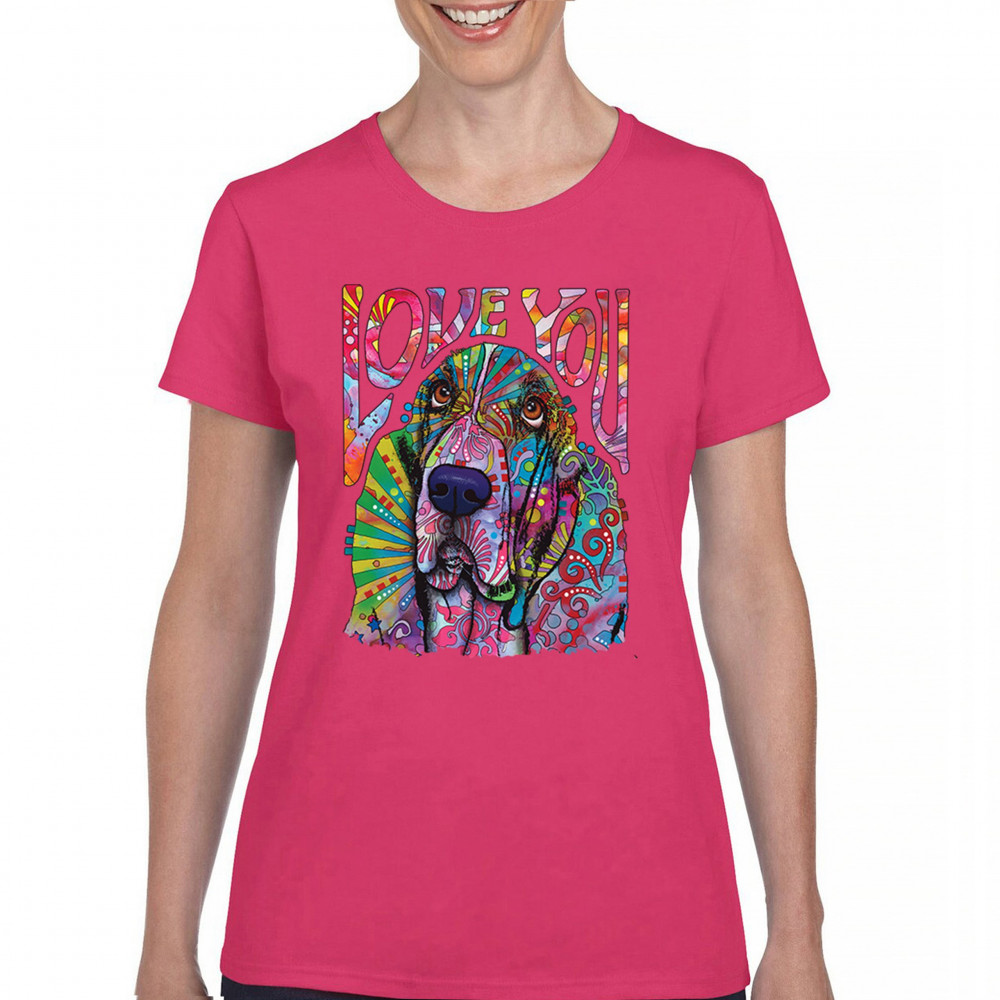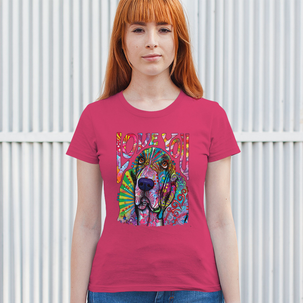 DEAN RUSSO CUTE LOVE YOU BASSET t-shirt colorful dog neon pet women's tee pink