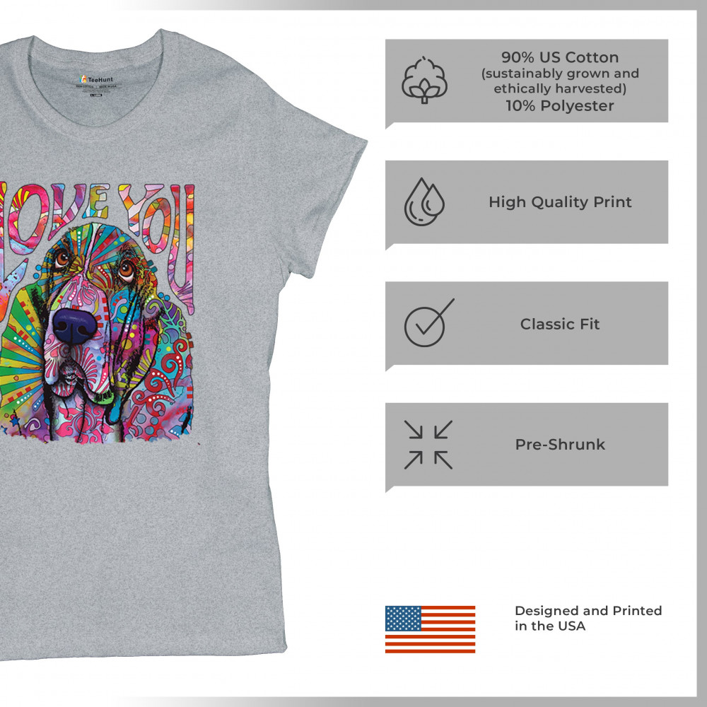 DEAN RUSSO CUTE LOVE YOU BASSET t-shirt colorful dog neon pet women's tee gray
