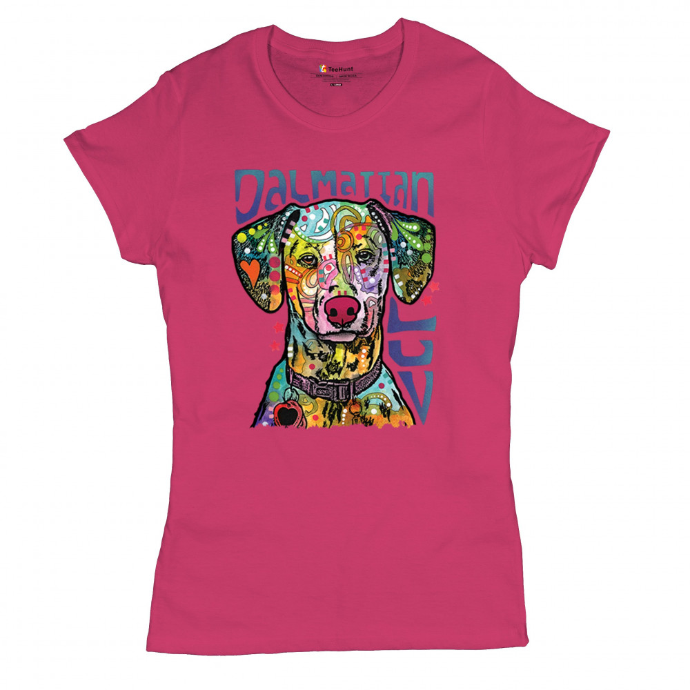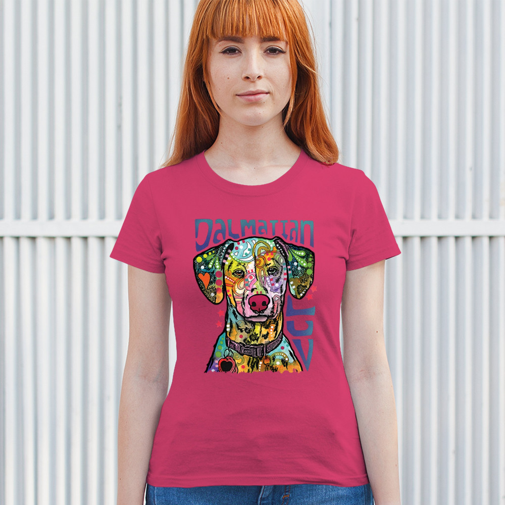 DEAN RUSSO DALMATIAN LUV COLORFUL DOG t-shirt neon puppy lover women's tee pink