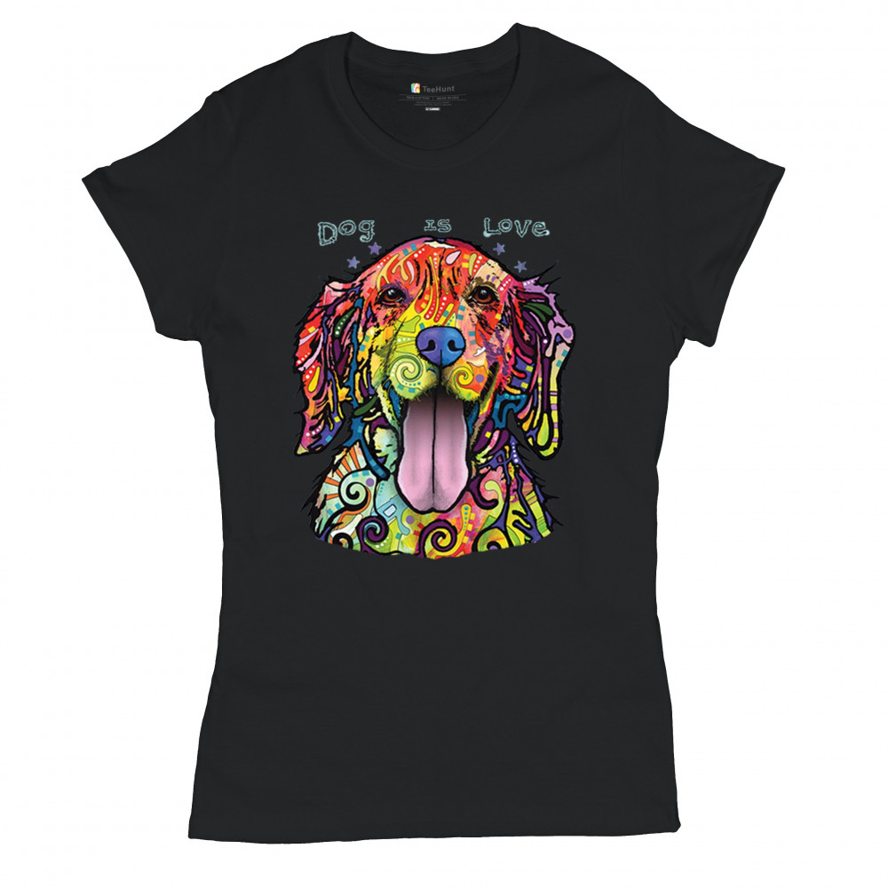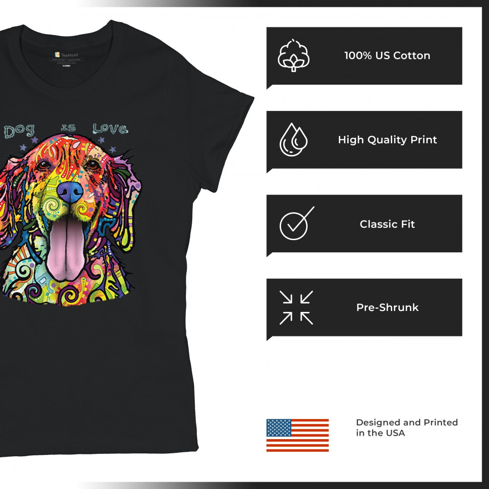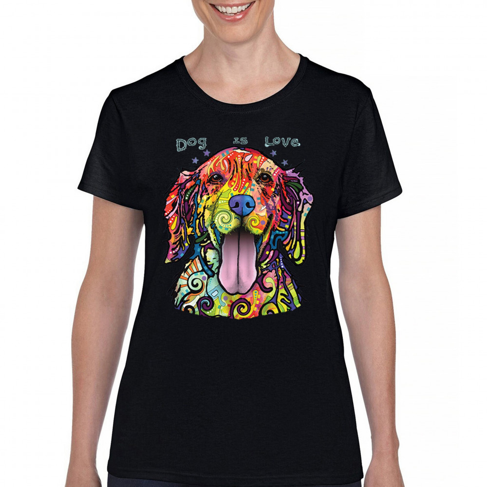 DEAN RUSSO DOG IS LOVE LABRADOR RETRIEVER t-shirt happy pet women's tee black