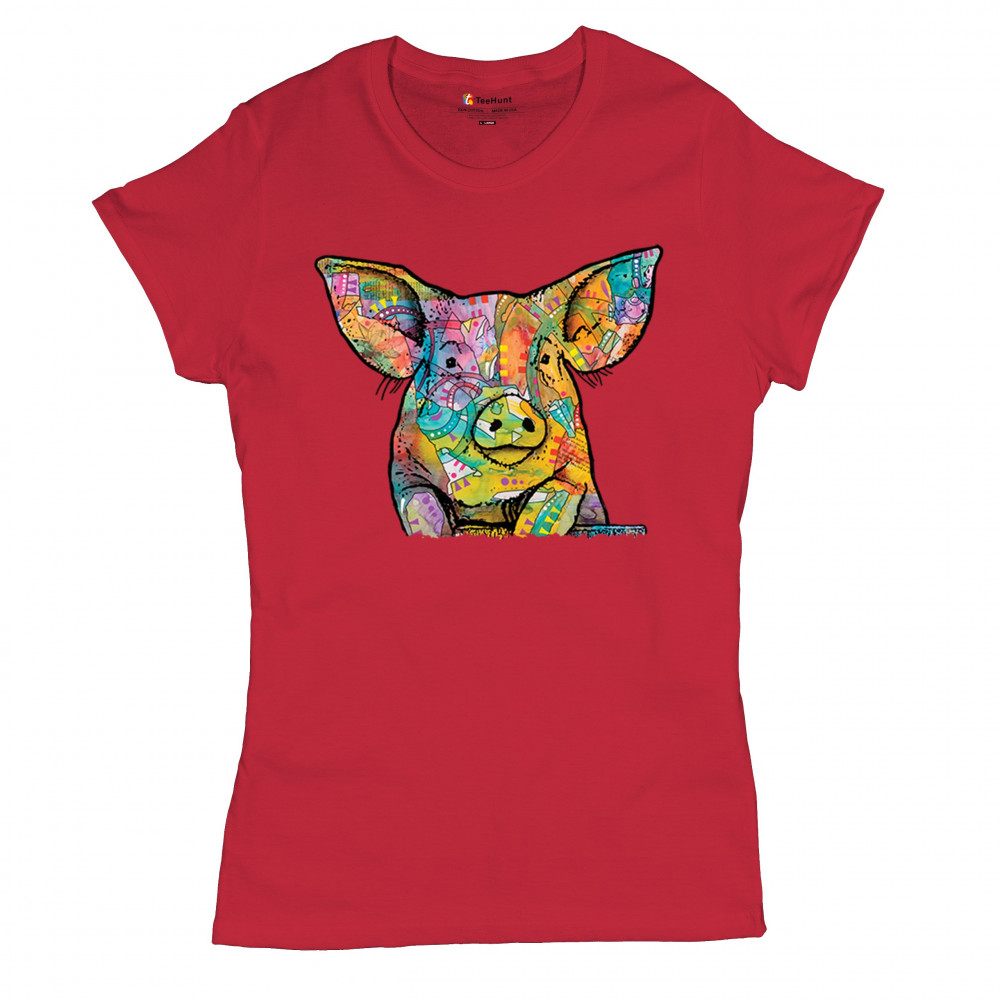 DEAN RUSSO FUNNY CUTE PIG t-shirt farm piglet lover barn women's tee red