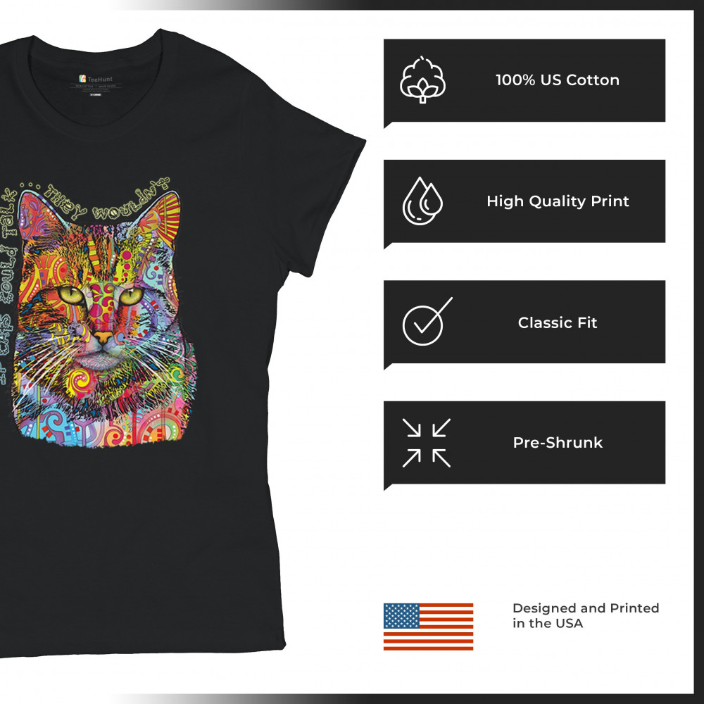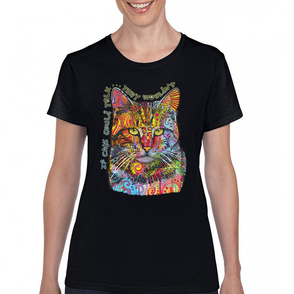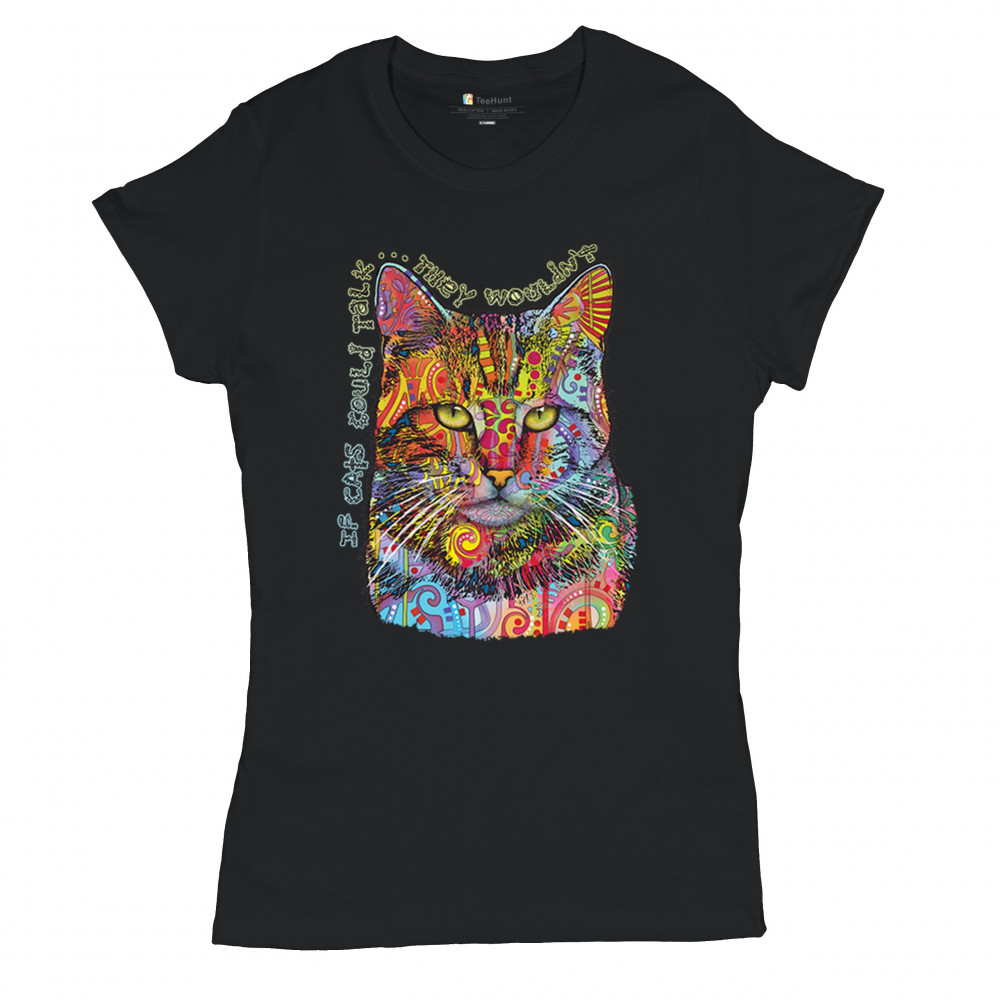DEAN RUSSO IF CATS COULD TALK THEY WOULDN'T t-shirt cute cat women's tee black