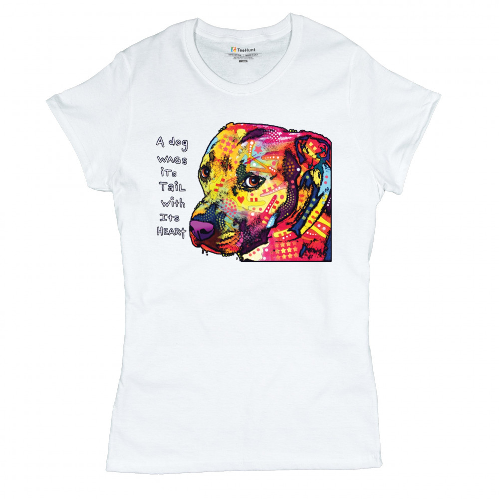 DEAN RUSSO PIT BULL t-shirt dog wags its tail with its heart women's tee white